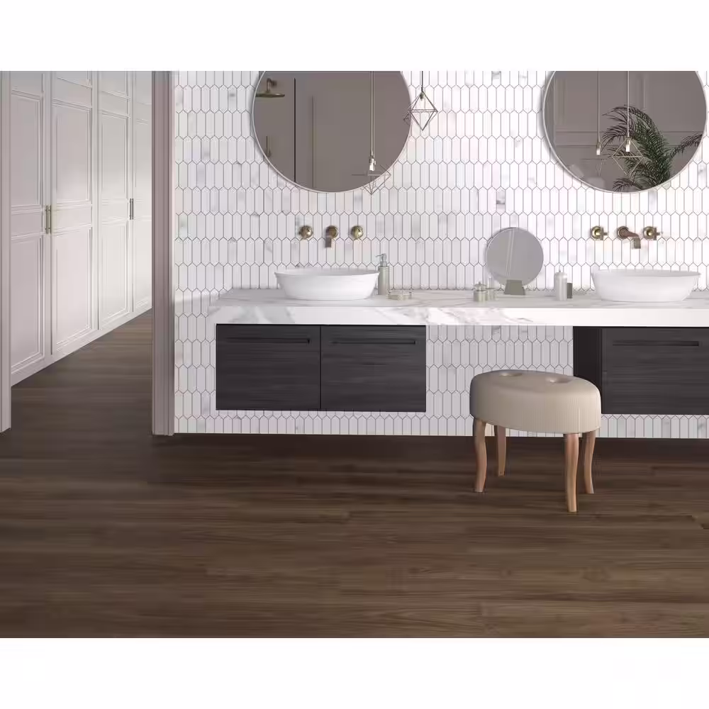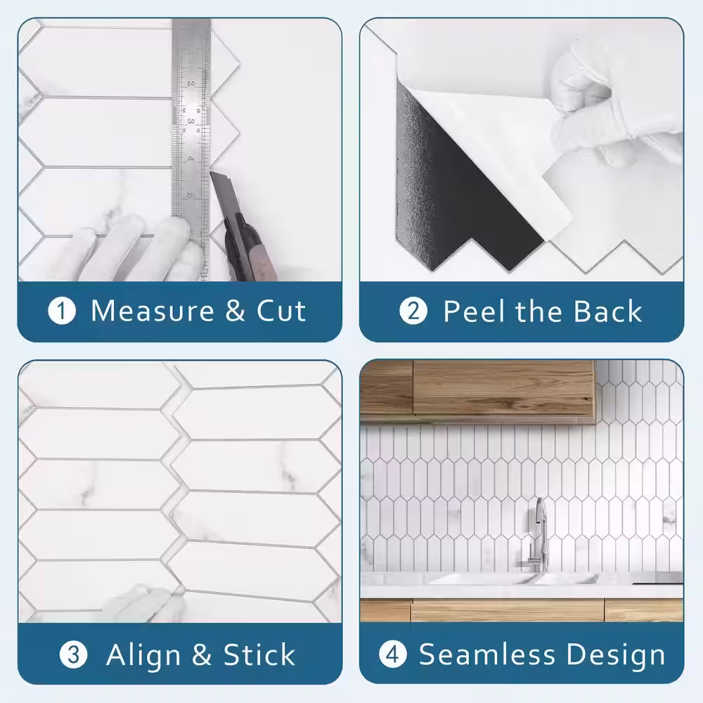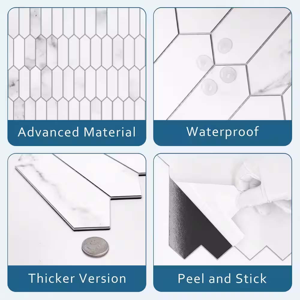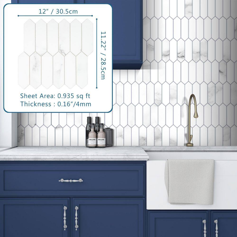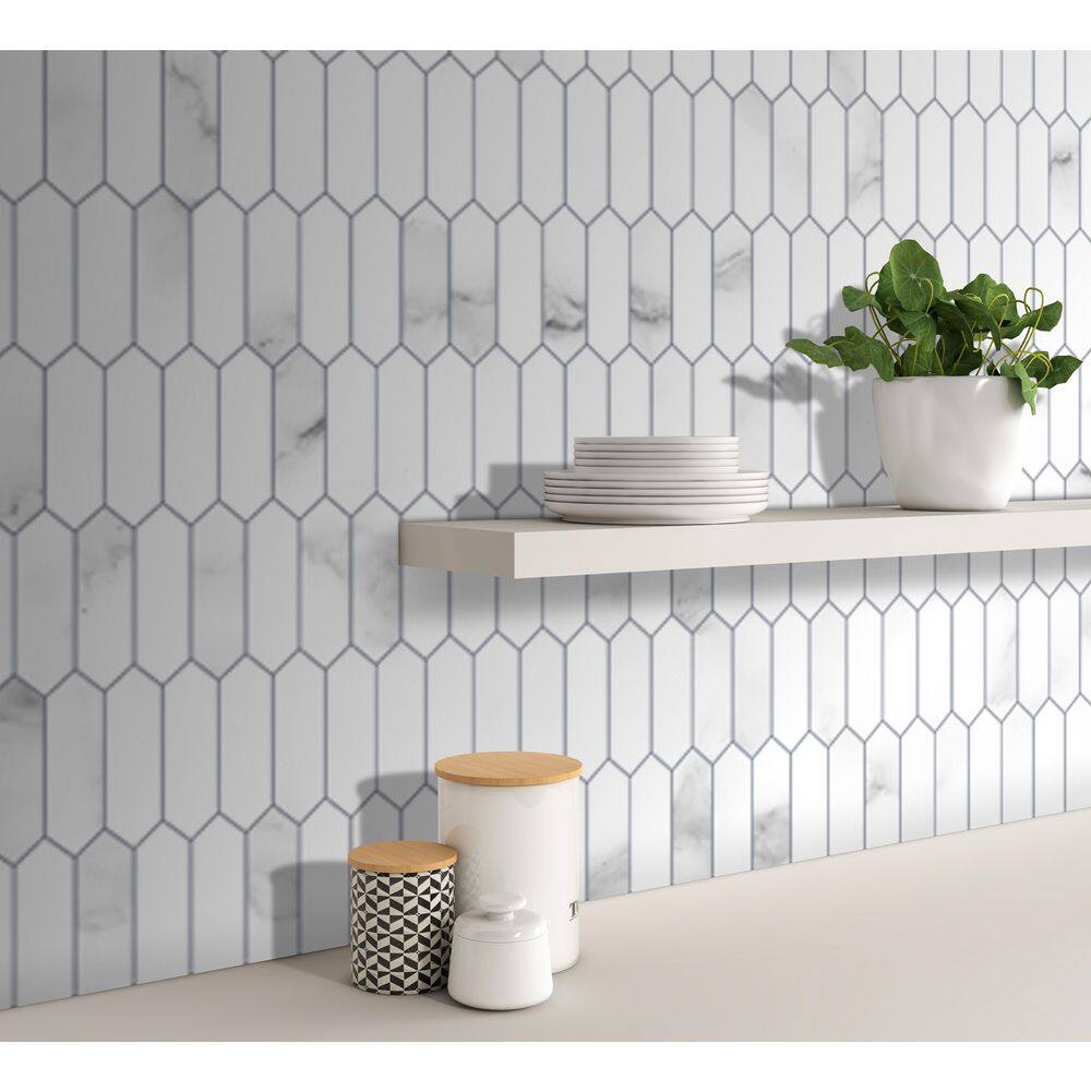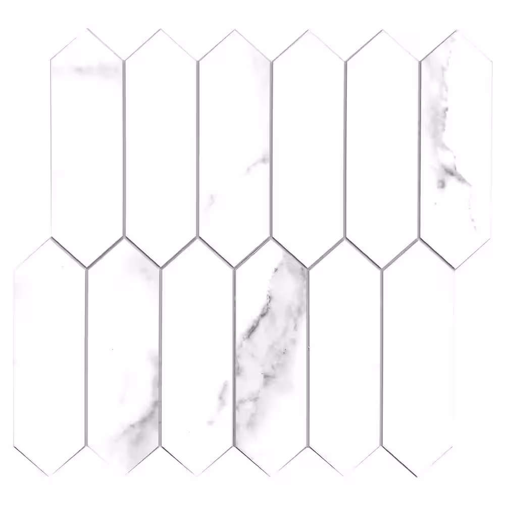 None CARRARA Marble Long Hexagon 12 in. x 11.22 in. Peel and Stick Stone Composite Tile (10-Tiles, 9.35 sq.ft.)