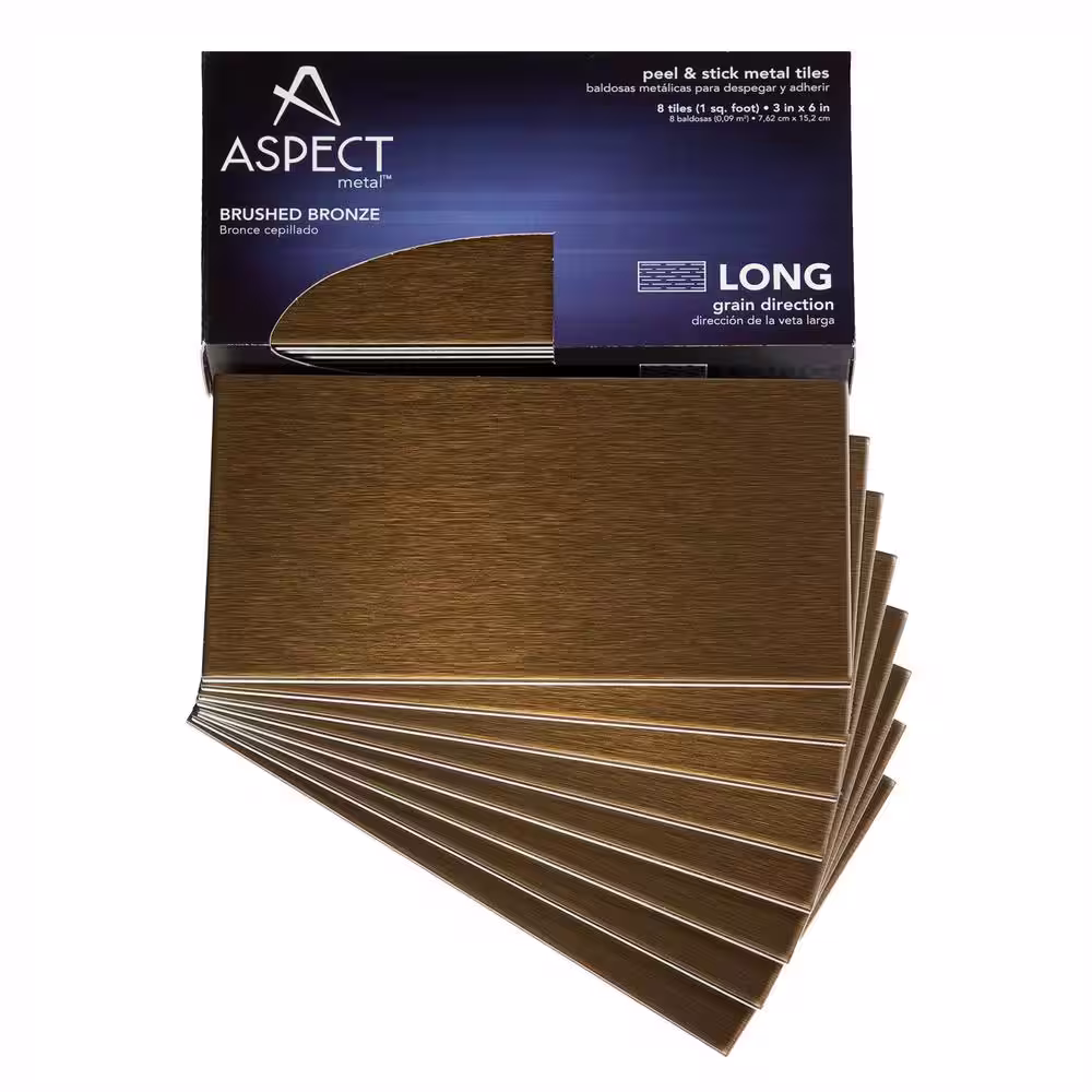Aspect Long Grain 6 in. x 3 in. Brushed Bronze Metal Decorative Wall Tile (8-Pack)