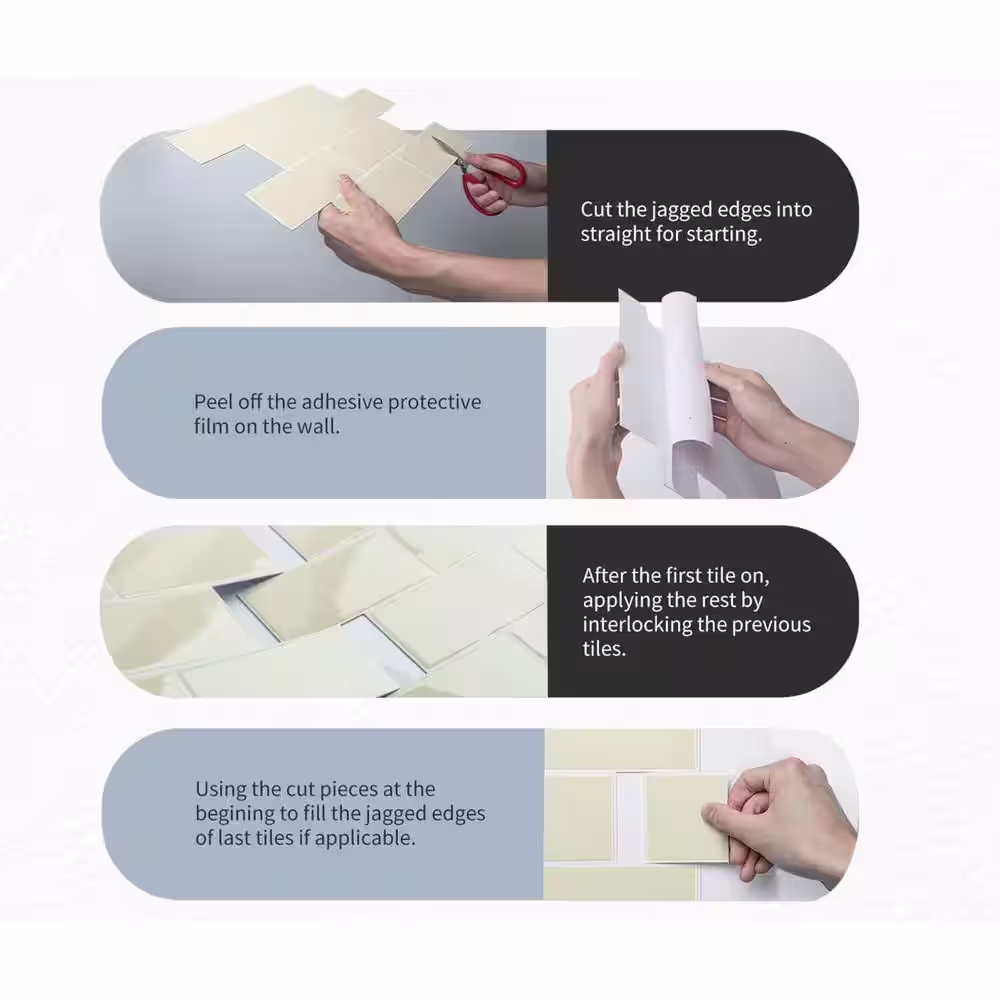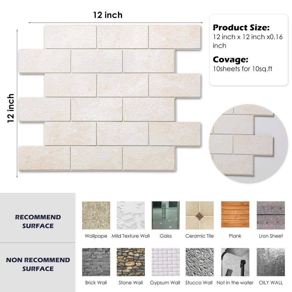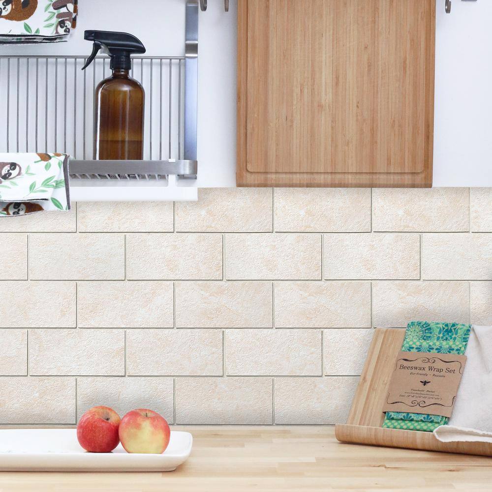 None Subway Collection Creamy Stone 12 in. x 12 in. PVC Peel and Stick Tile (5 sq. ft./5-Sheets)