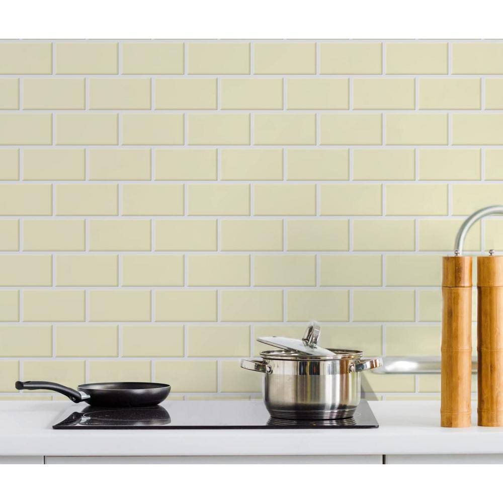 None 12 in. x 12 in. PVC Shiny Khaki Peel and Stick Backsplash Subway Tiles for Kitchen (10-Sheets/10 sq. ft.)