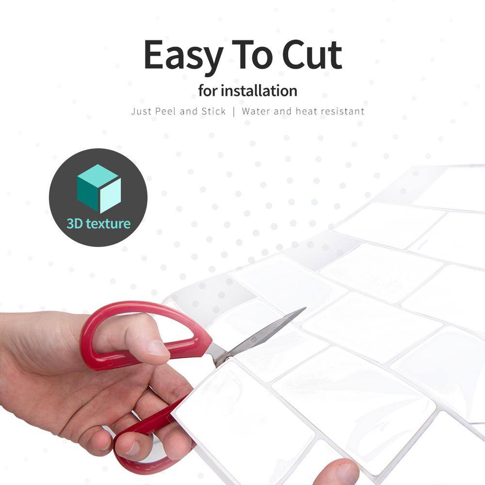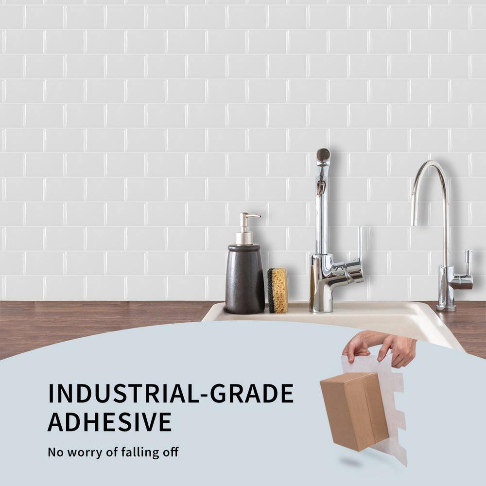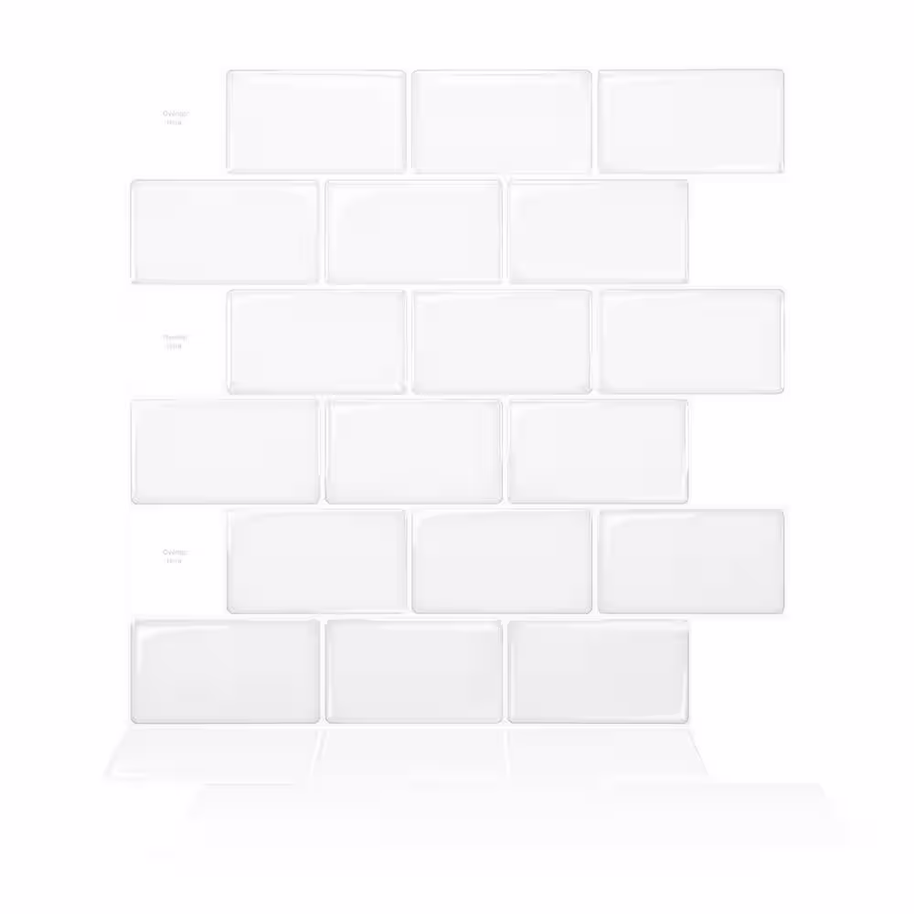 LONGKING Subway White Peel and Stick Backsplash Tiles Vinyl /Gel Mosaic 12 in. x 12 in .( 8.2 sq .ft / box)