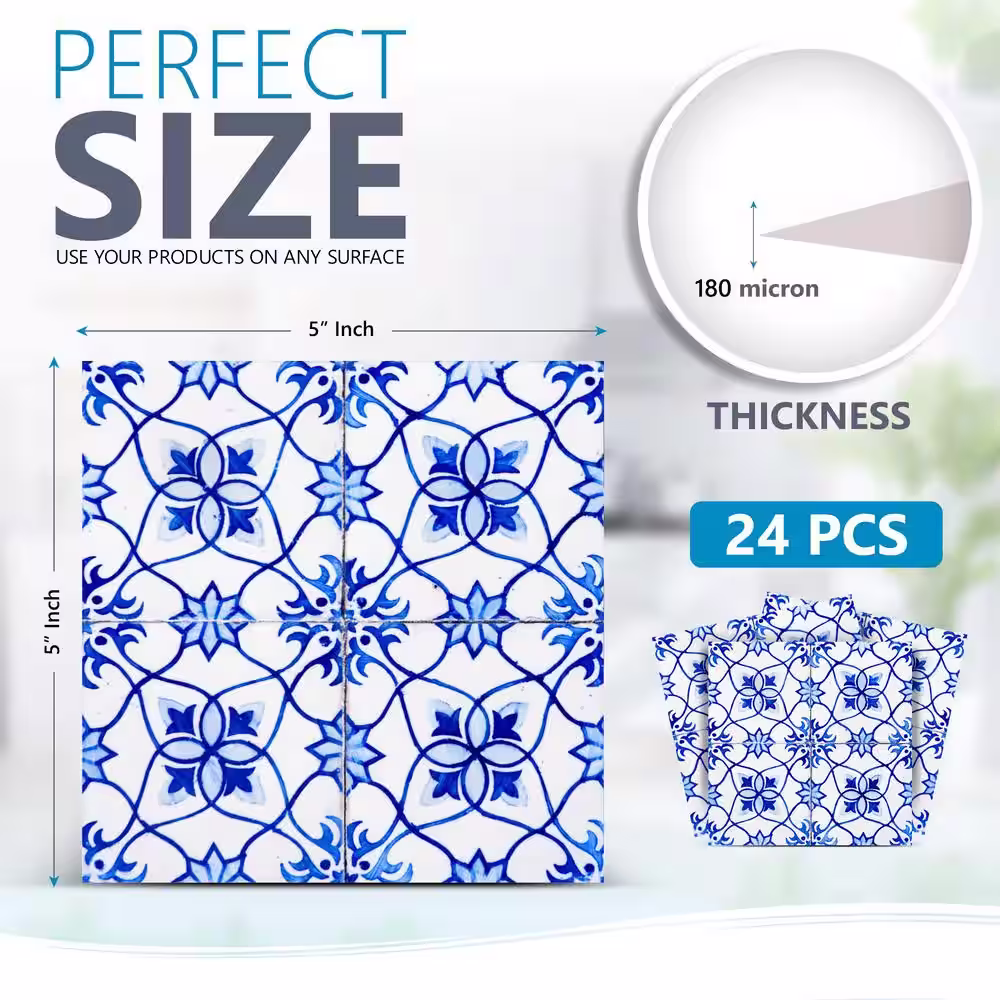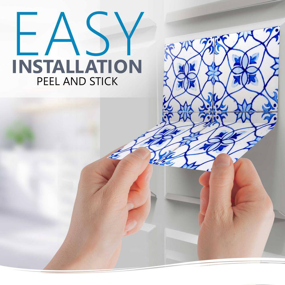 None Blue/White H19 5 in. x 5 in. Vinyl Peel and Stick Tile (24 Tiles, 4.17 sq. ft./pack)