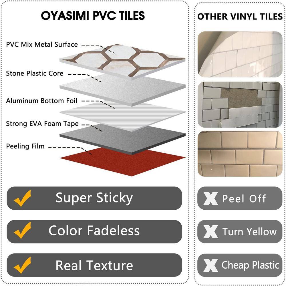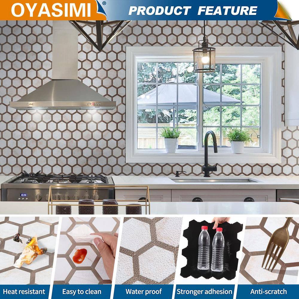 None Hexagon Cloud with Gold 12 in. x 12 in. PVC Peel and Stick Backsplash Wall Tile (5 sq.ft./5-Sheets)