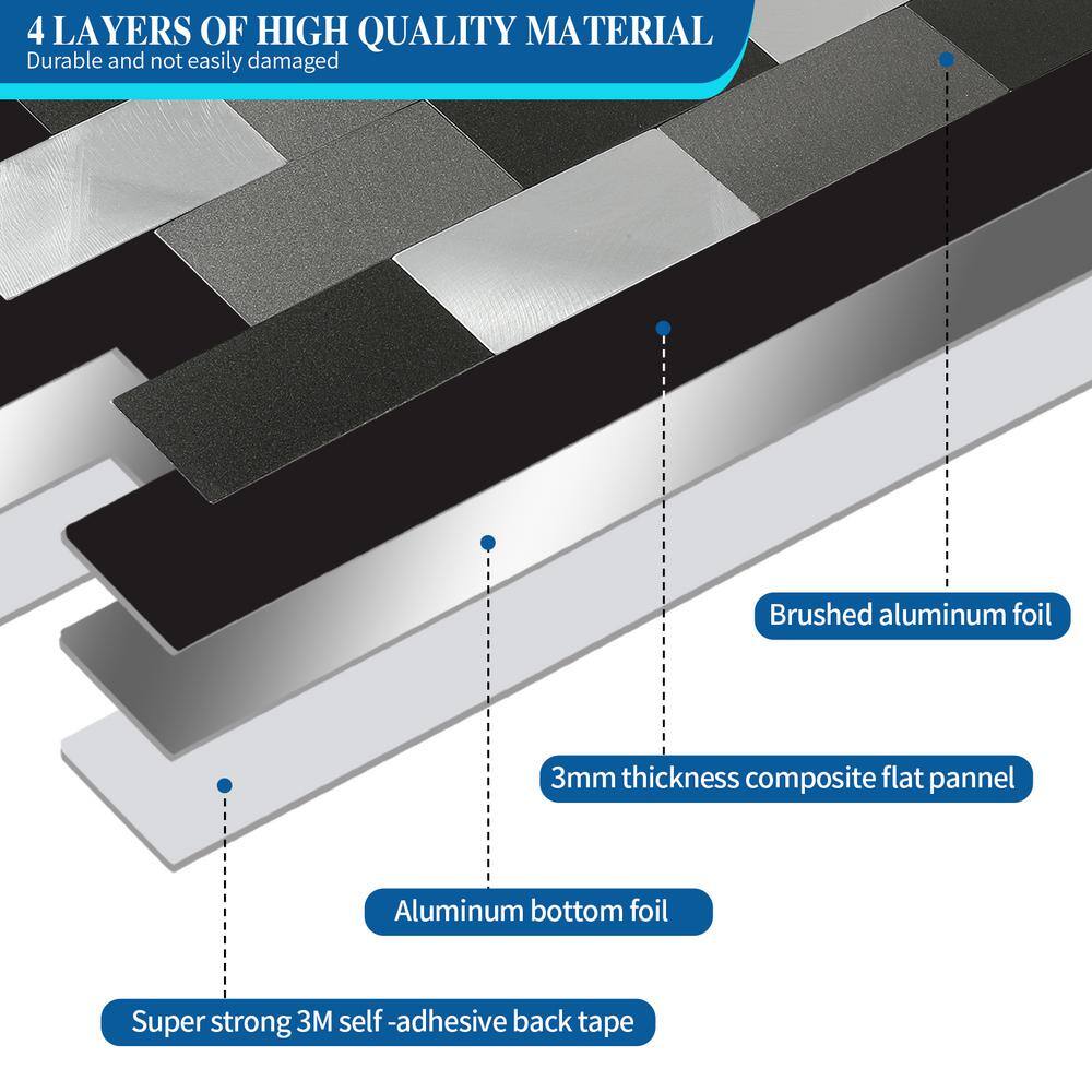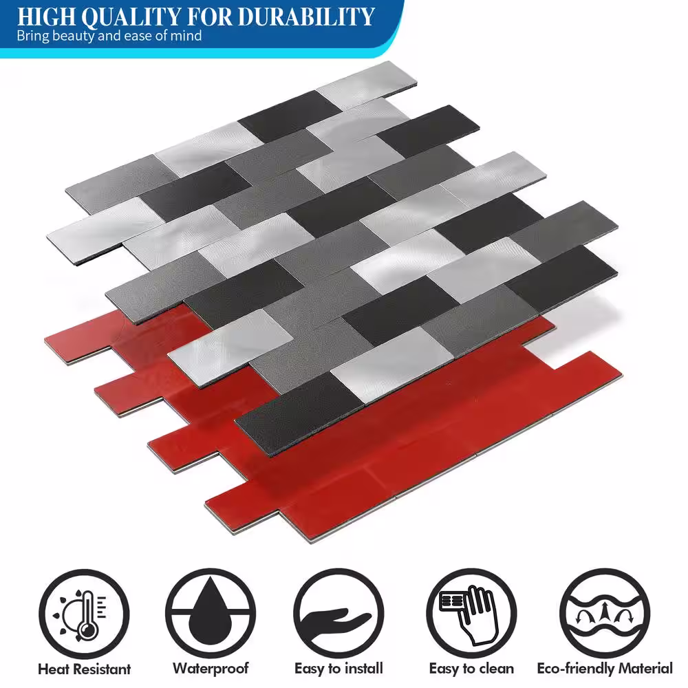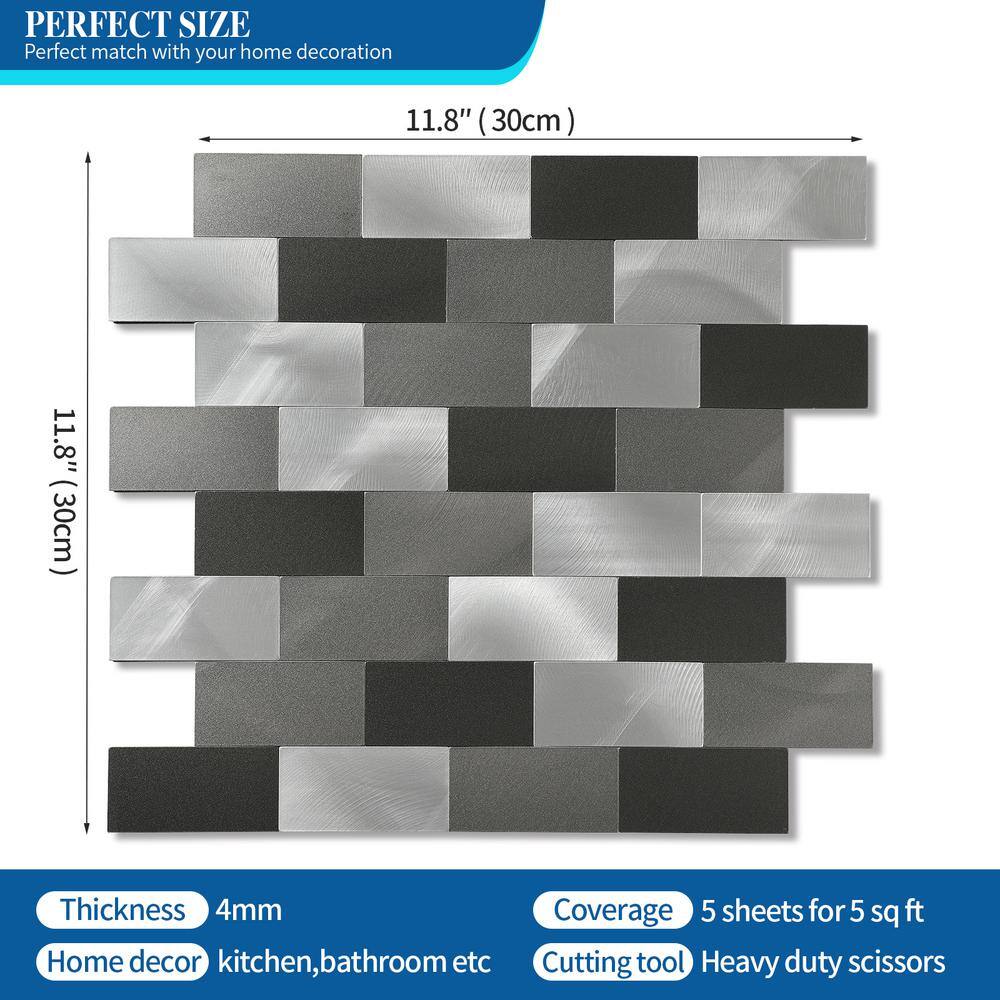 None Modern Metal Collection Sliver 12 in. x 12 in. in. Metal Peel and Stick Tile (5 sq. ft./5-Sheets)