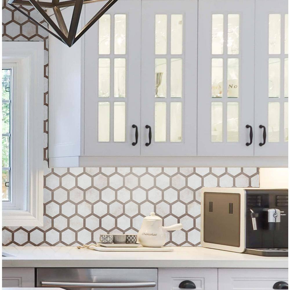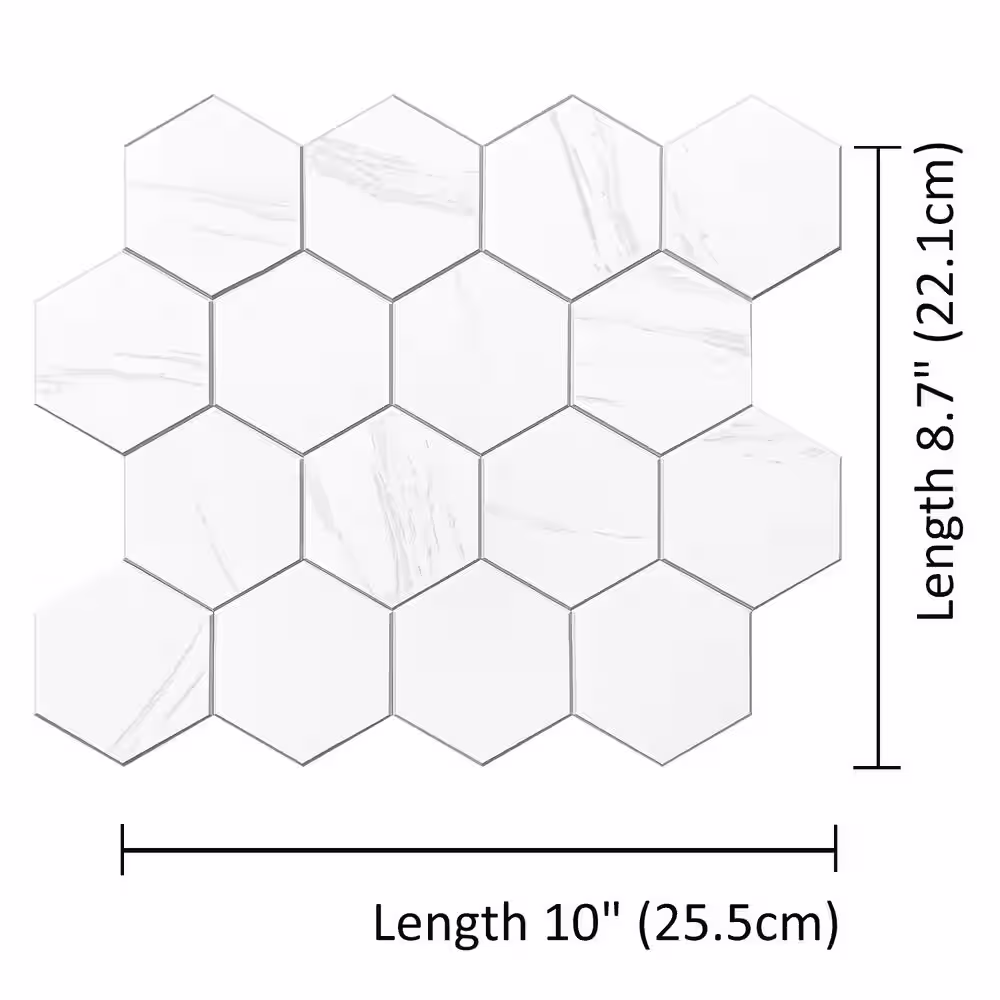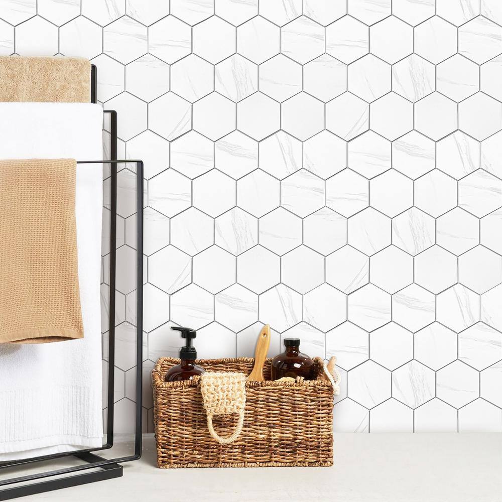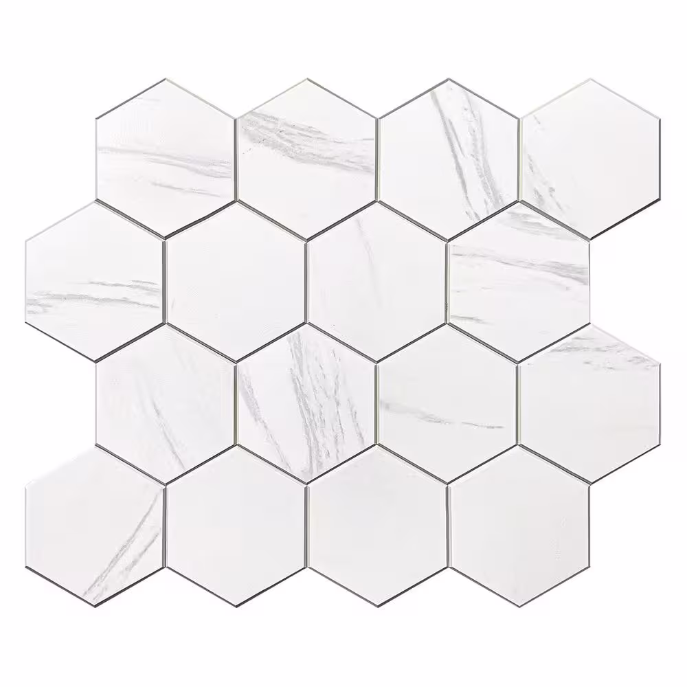 MURELLA Marble Hex 10.83 in. x 11.81 in. SPC Peel and Stick Backsplash Tile (0.9 sq. ft./pack)