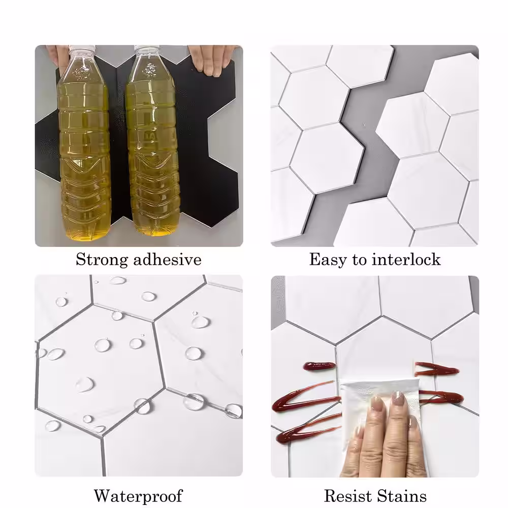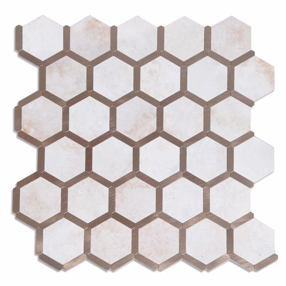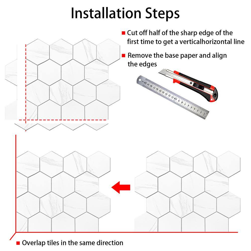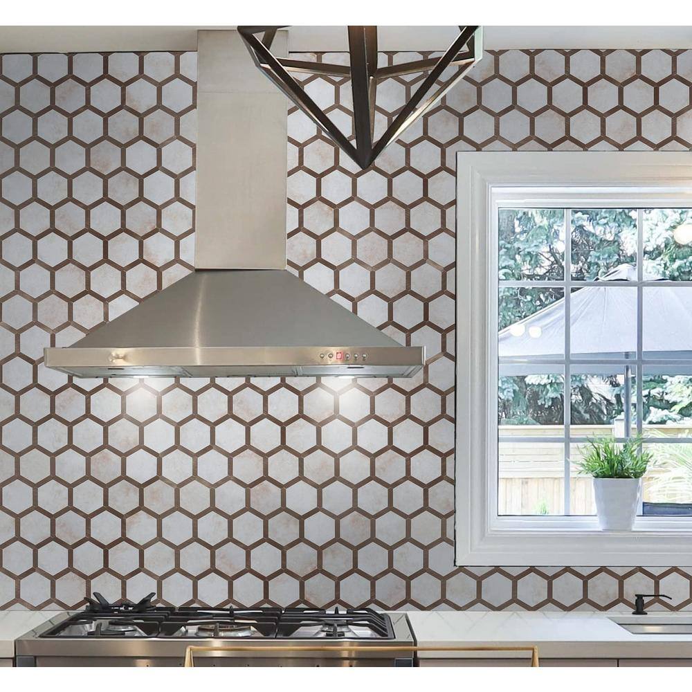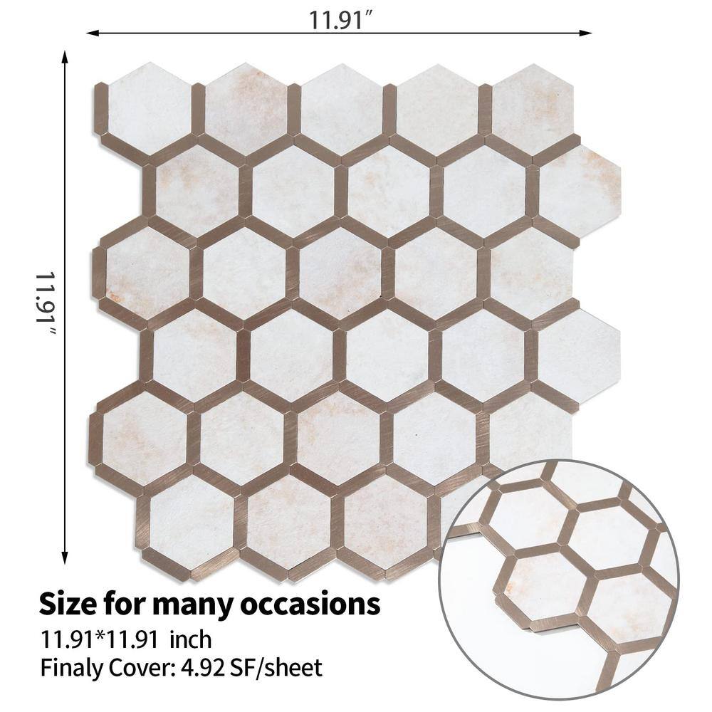 MURELLA Marble Hex 10.83 in. x 11.81 in. SPC Peel and Stick Backsplash Tile (0.9 sq. ft./pack)