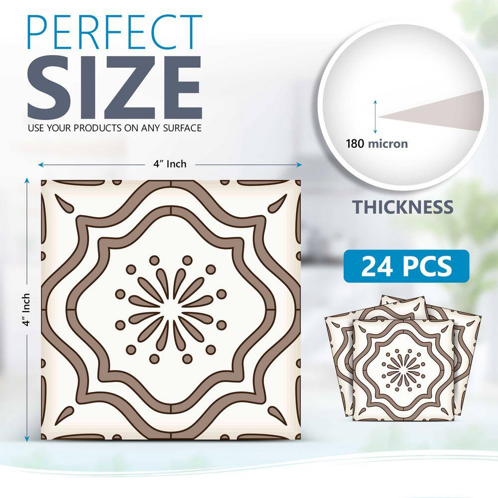 None White and Brown B517 4 in. x 4 in. Vinyl Peel and Stick Tile (24 Tiles, 2.67 sq.ft./pack)