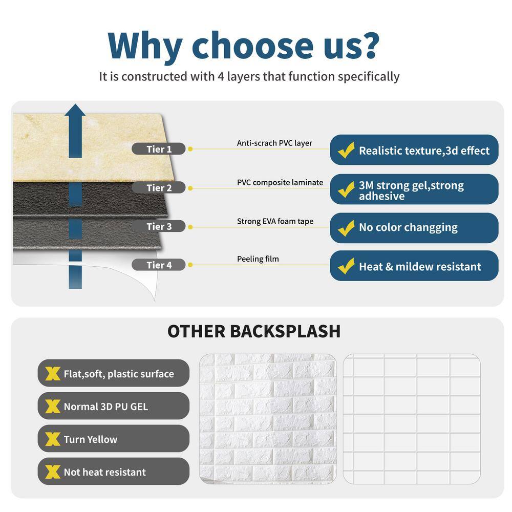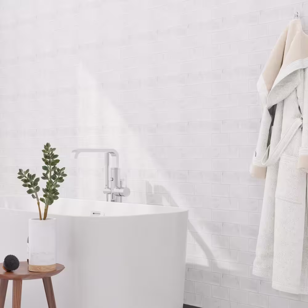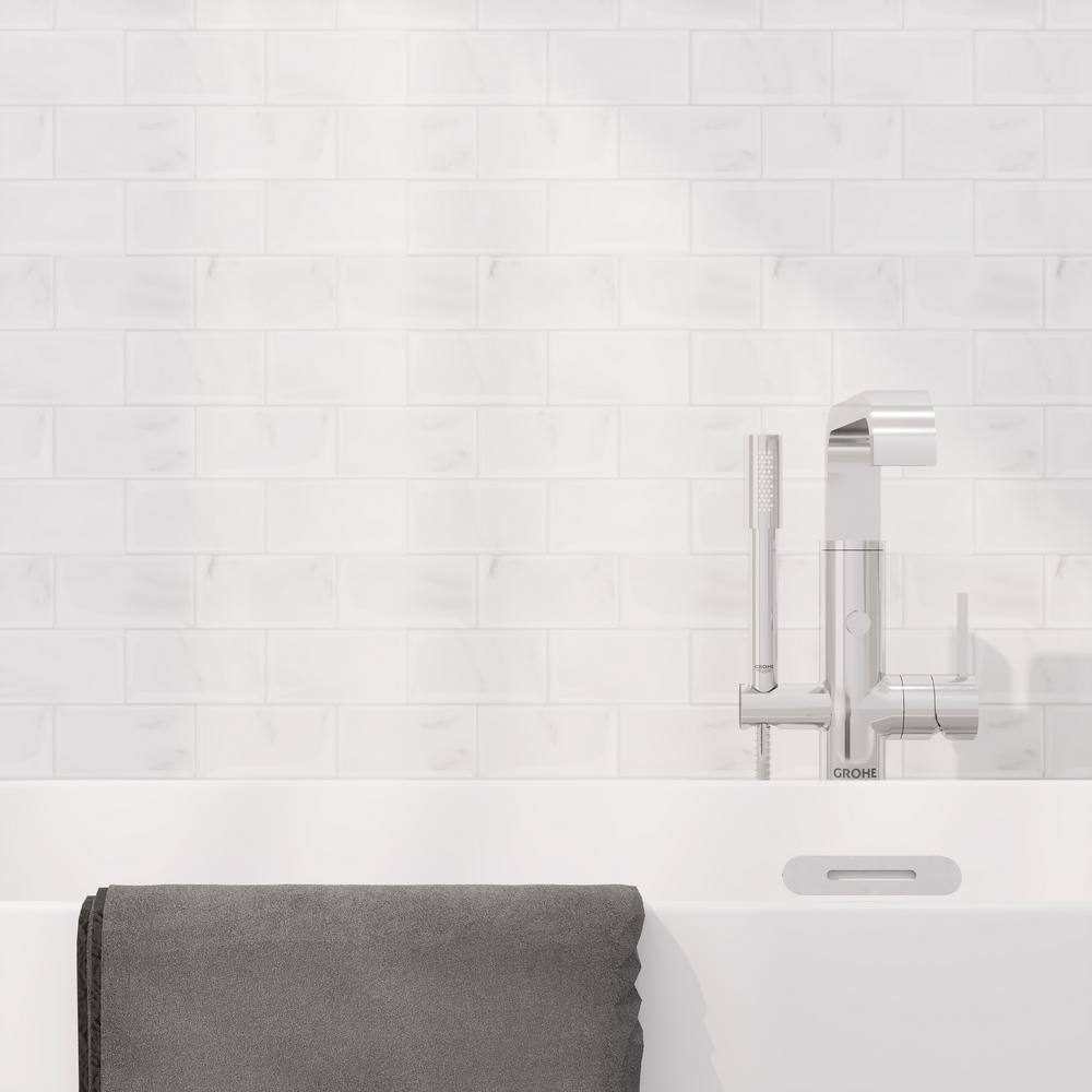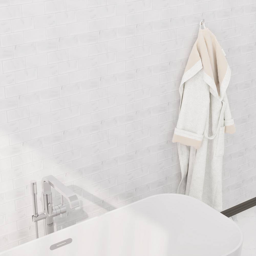 None Splash White Marble 12 in. x 12 in. 2.5mm PVC Peel and Stick Tiles Backsplash (8 sq. ft./8pcs Per Case)