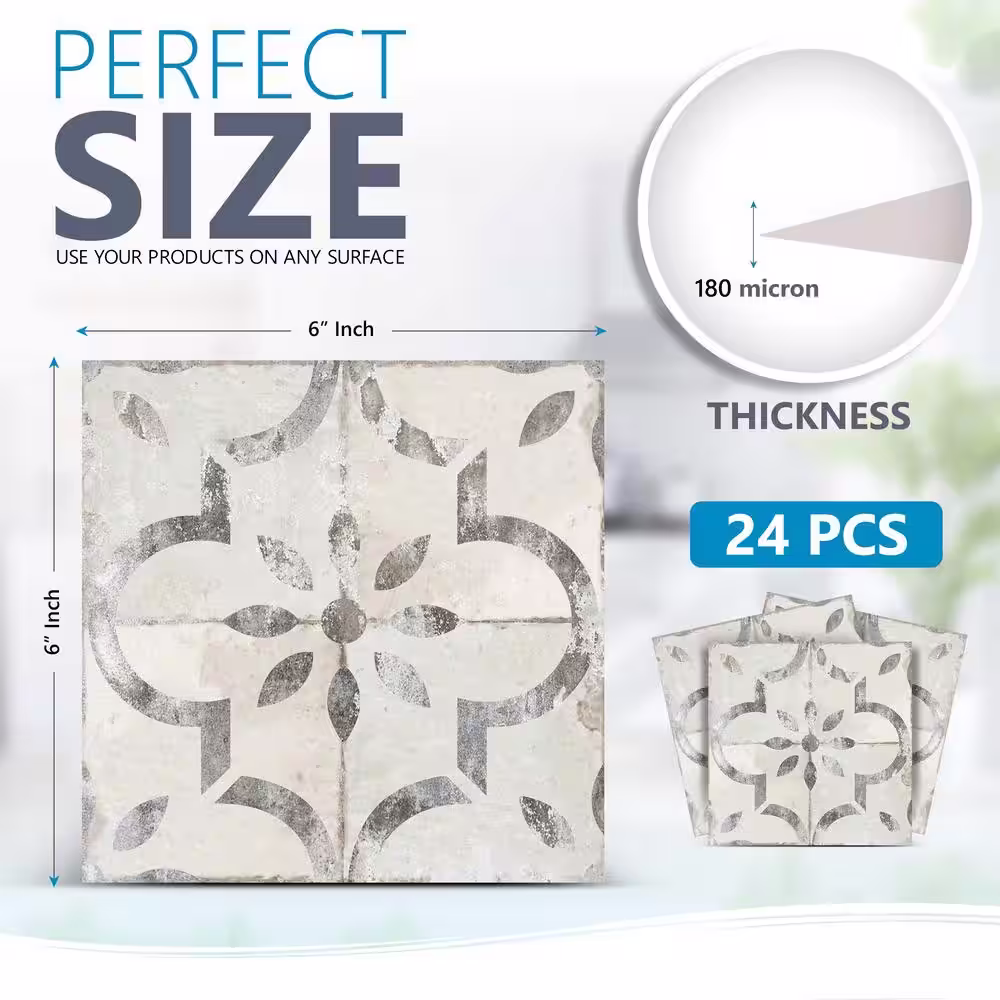None Grey R20 6 in. x 6 in. Vinyl Peel and Stick Tile (24 Tiles, 6 sq. ft./Pack)