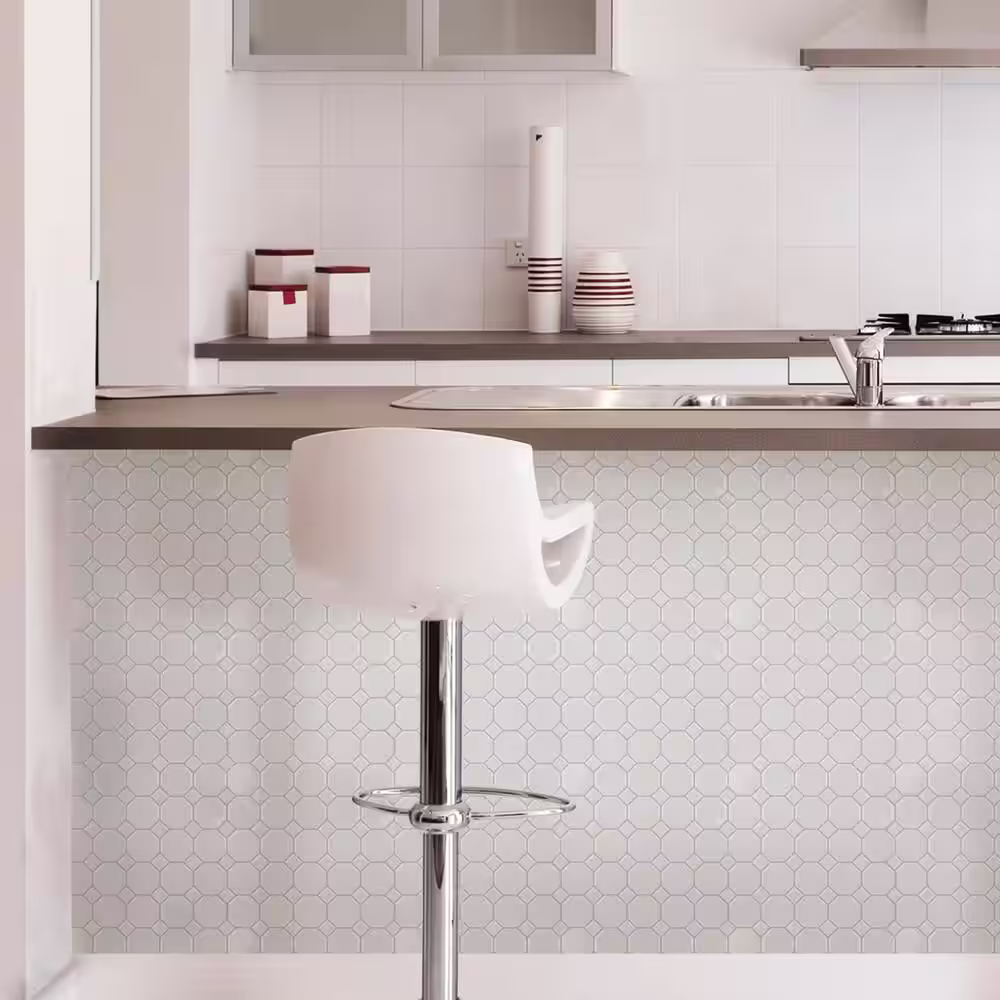 InHome Octagon 10 in. x 10 in. Off White Peel and Stick Backsplash Tiles