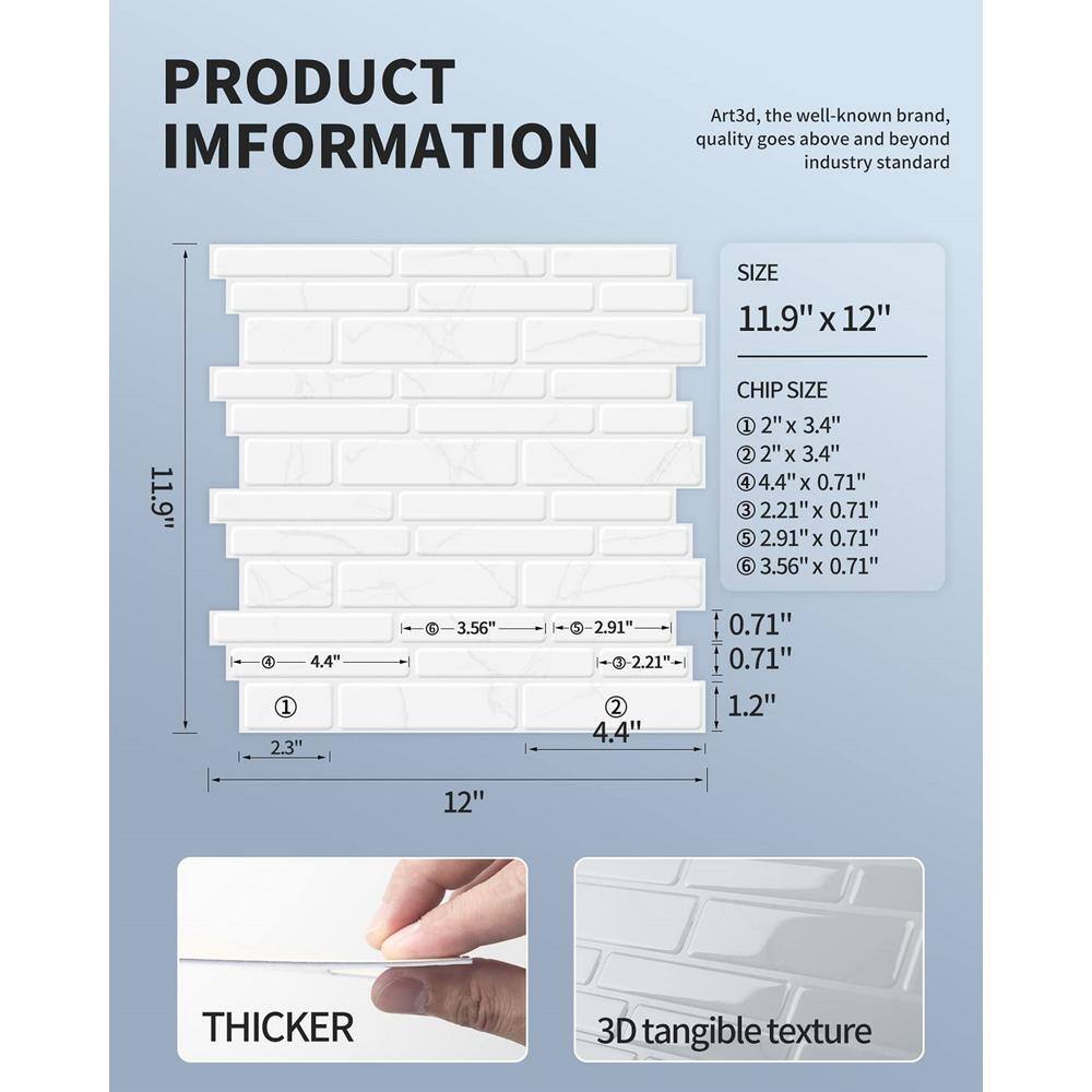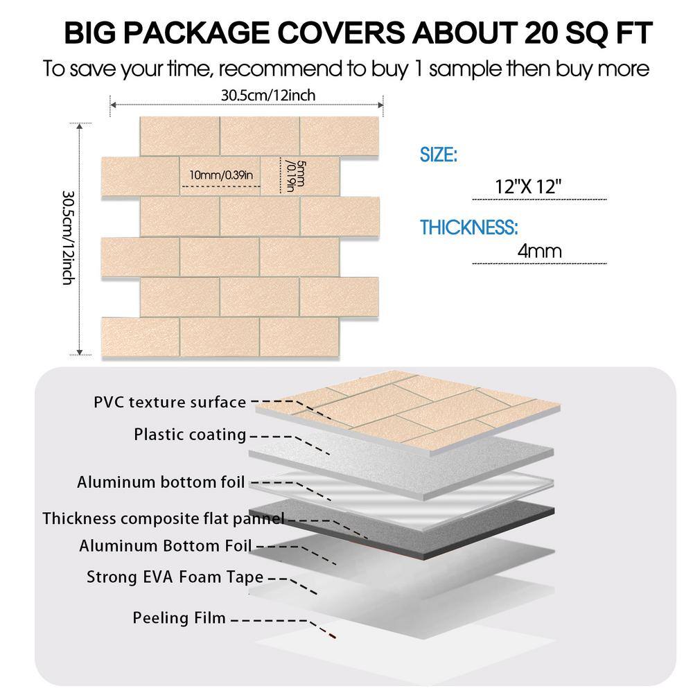 None Peel and Stick Wall Tiles for Kitchen Backsplash Bathroom and Living Room