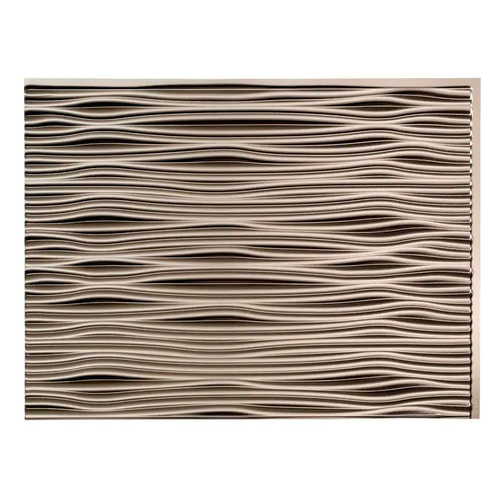 Fasade 18.25 in. x 24.25 in. Brushed Nickel Waves PVC Decorative Tile Backsplash