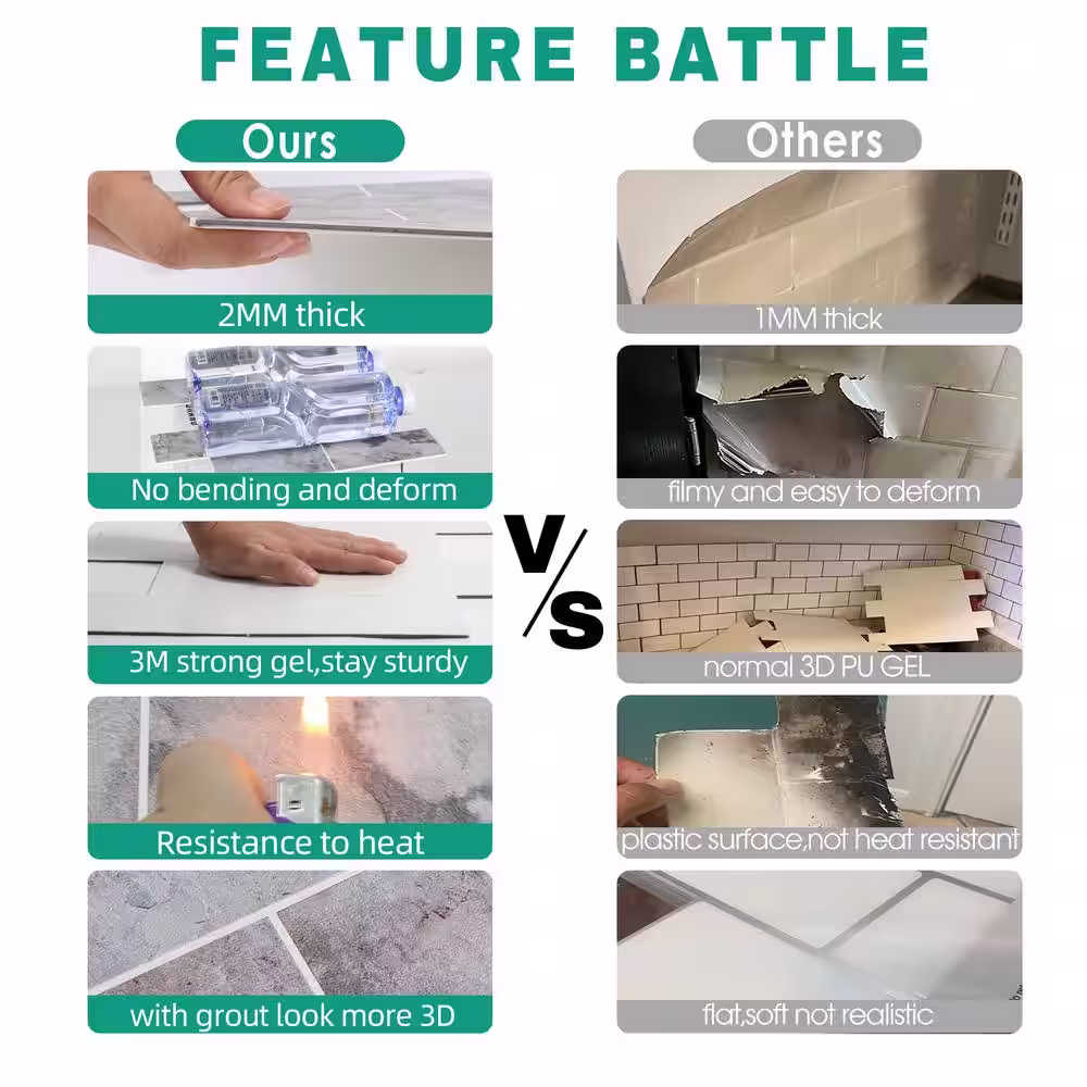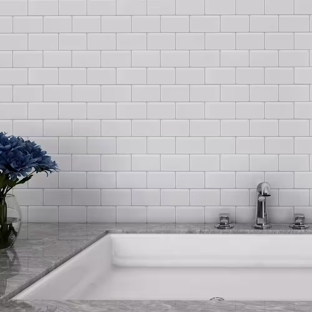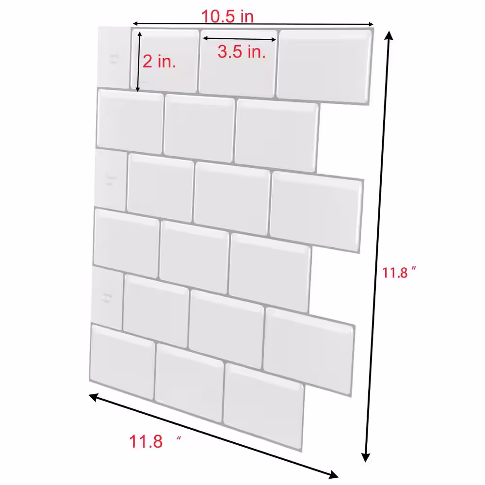 Art3d White Subway Vinyl Peel and Stick Backsplash Tile 11.8 in. x 10.5 in. ( 8 sq ft /Pack)