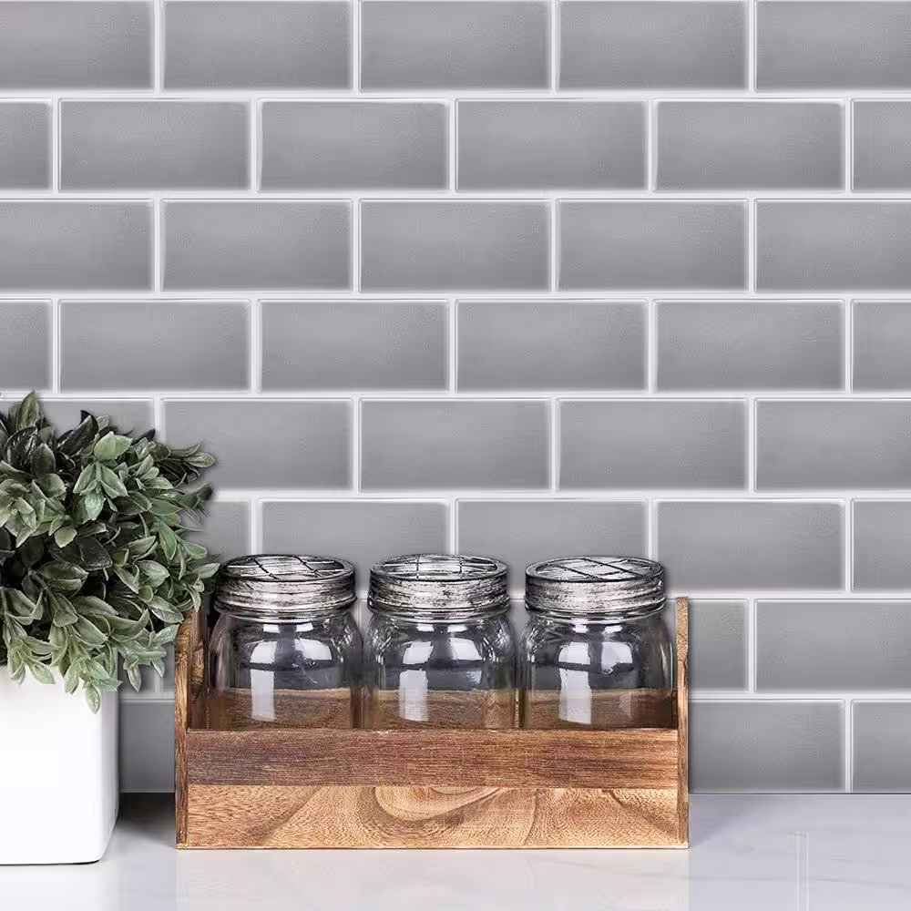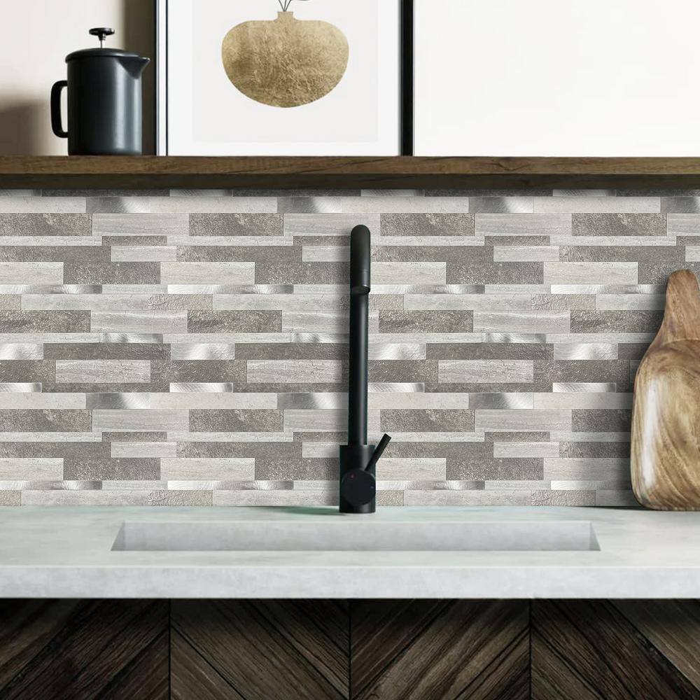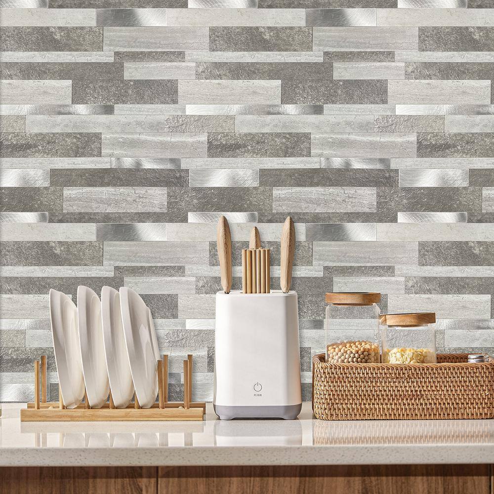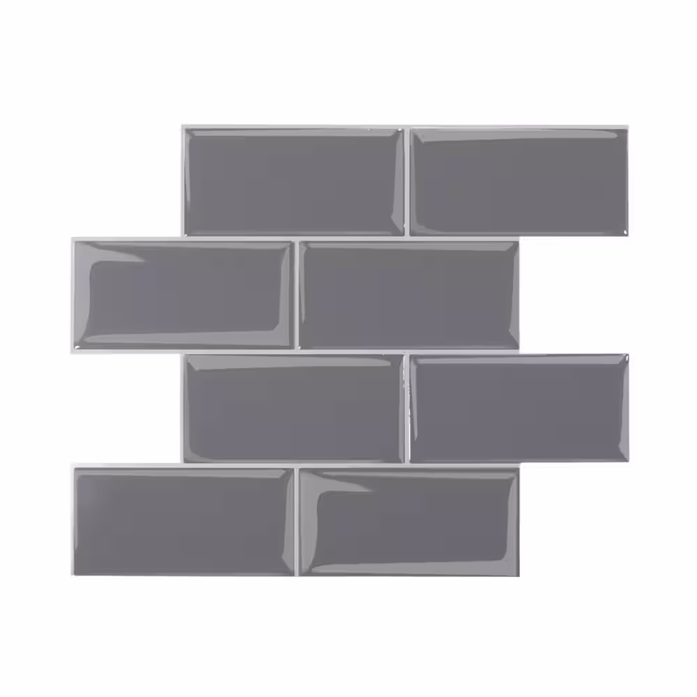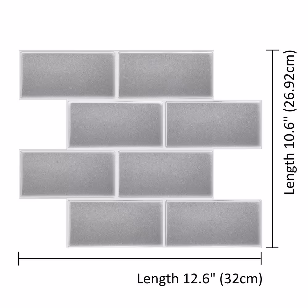 MURENO Grey Subway 10.00 in. x 12.60 in. Vinyl Peel and Stick Backsplash Tile (3.5 sq. ft./pack)