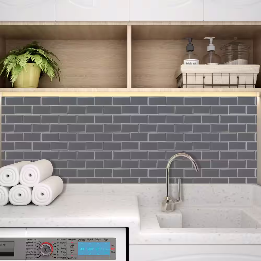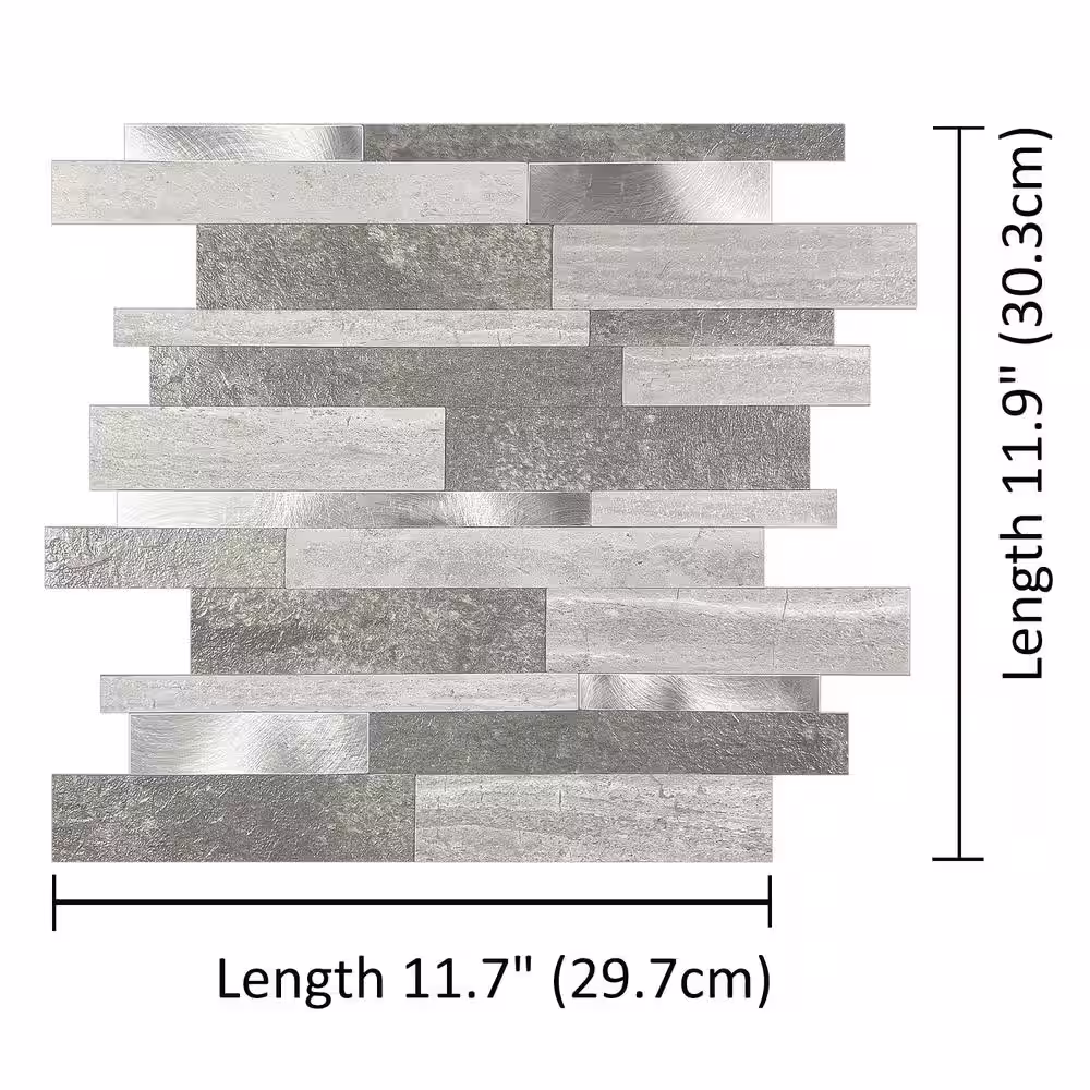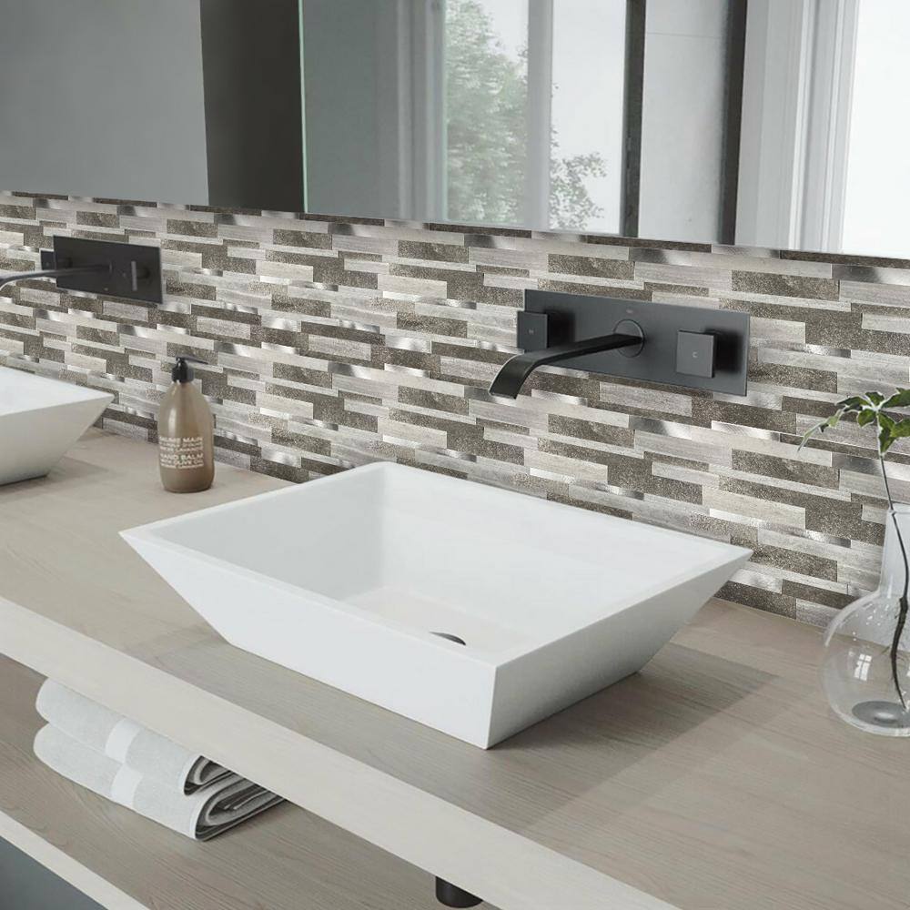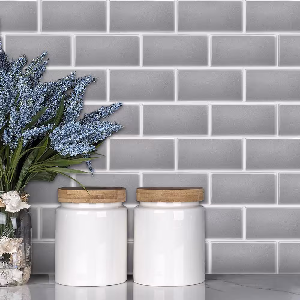 MURENO Grey Subway 10.00 in. x 12.60 in. Vinyl Peel and Stick Backsplash Tile (3.5 sq. ft./pack)