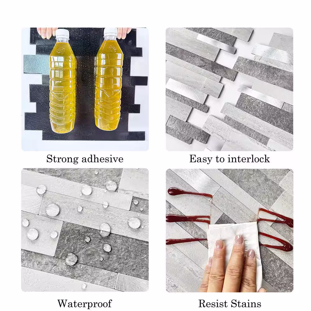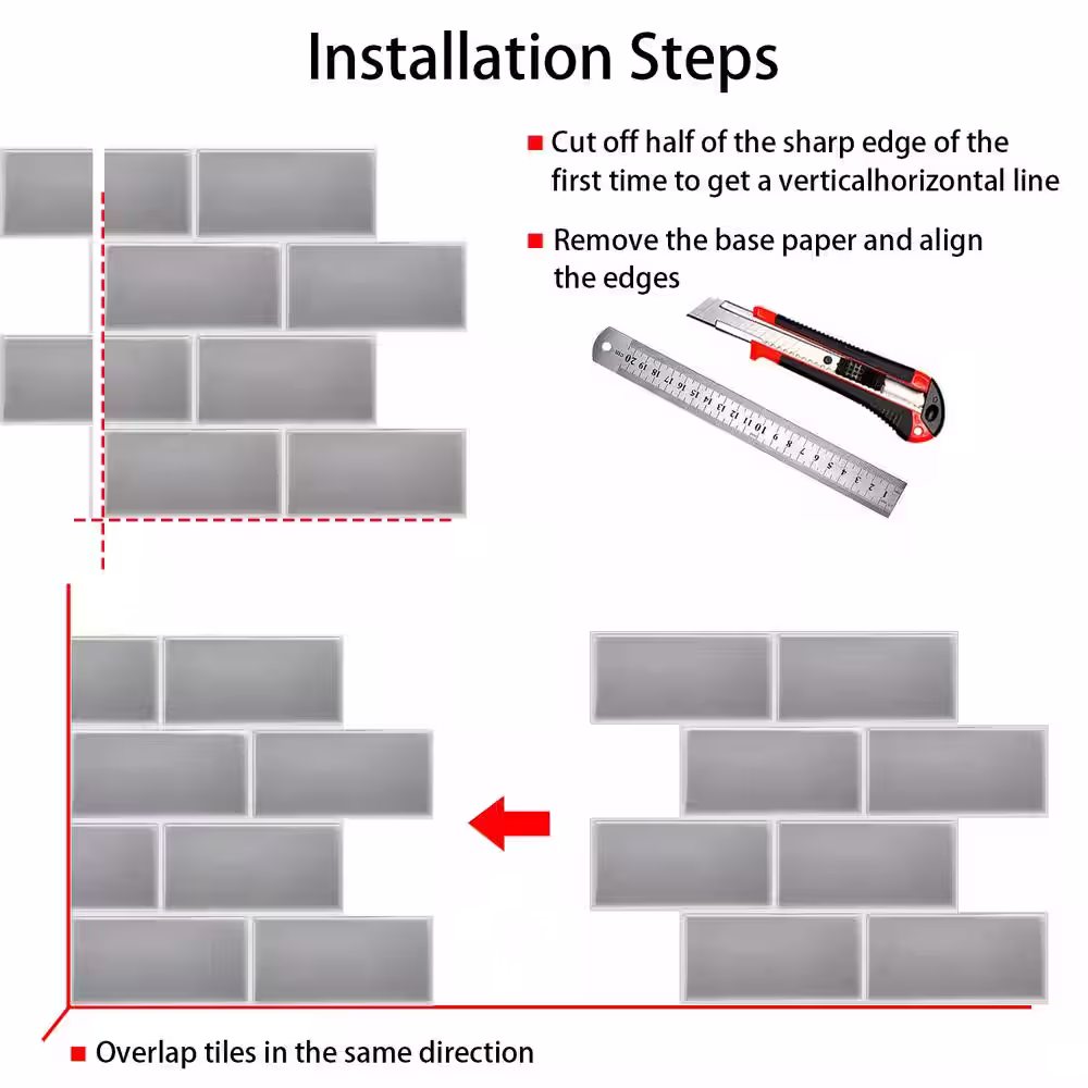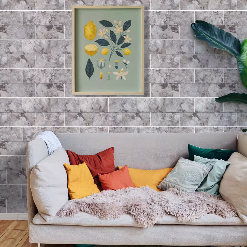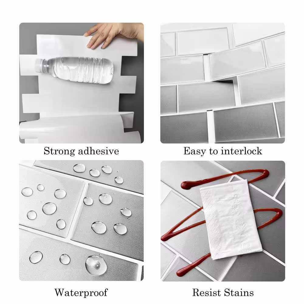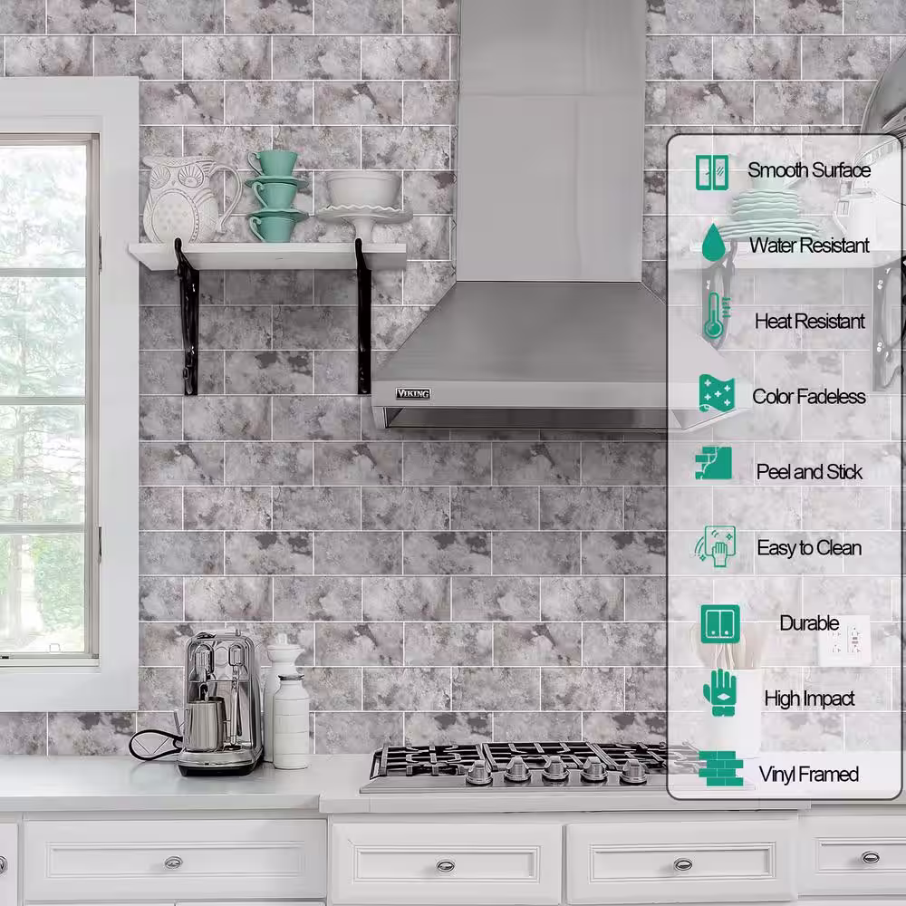 MURENO Grey Subway 10.00 in. x 12.60 in. Vinyl Peel and Stick Backsplash Tile (3.5 sq. ft./pack)