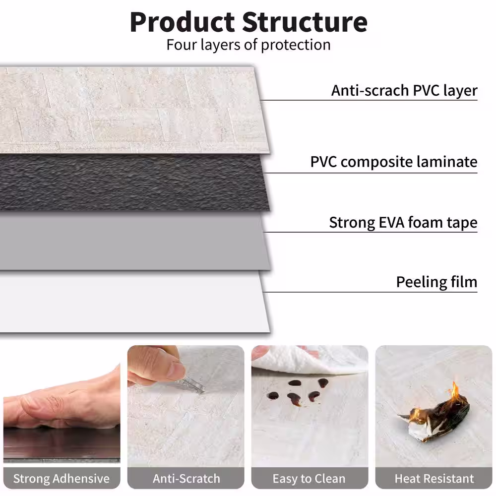 None Marble Collection Sandstone Beige 12 in. x 12 in. PVC Peel and Stick Tile (5 sq. ft./5-Sheets)