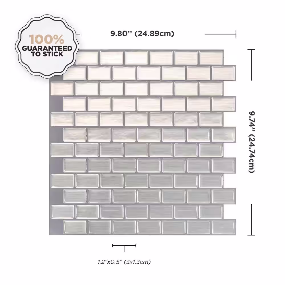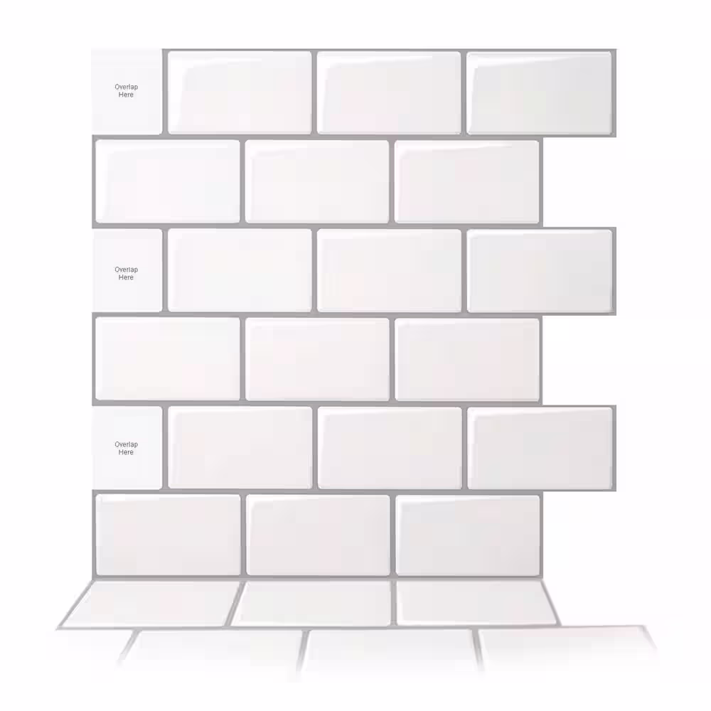 Art3dwallpanels 12 in. x 12 in. x 0.08 in. Peel and Stick Vinyl Subway Backsplash Tile in White (10-Pack)