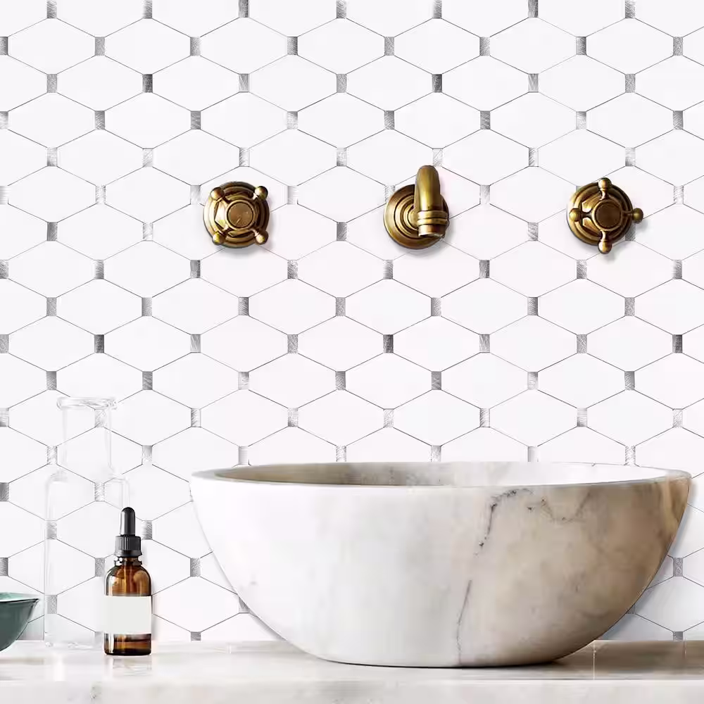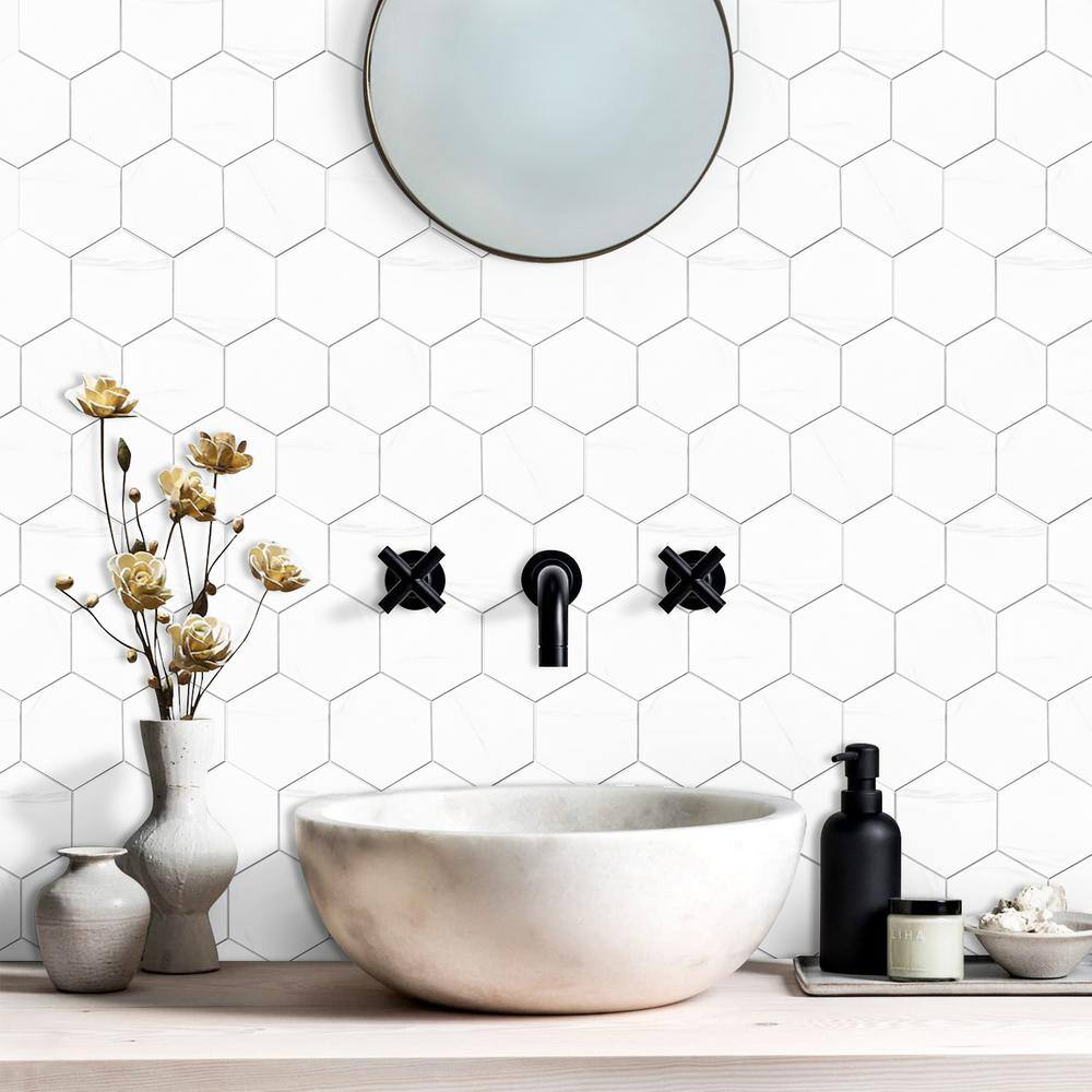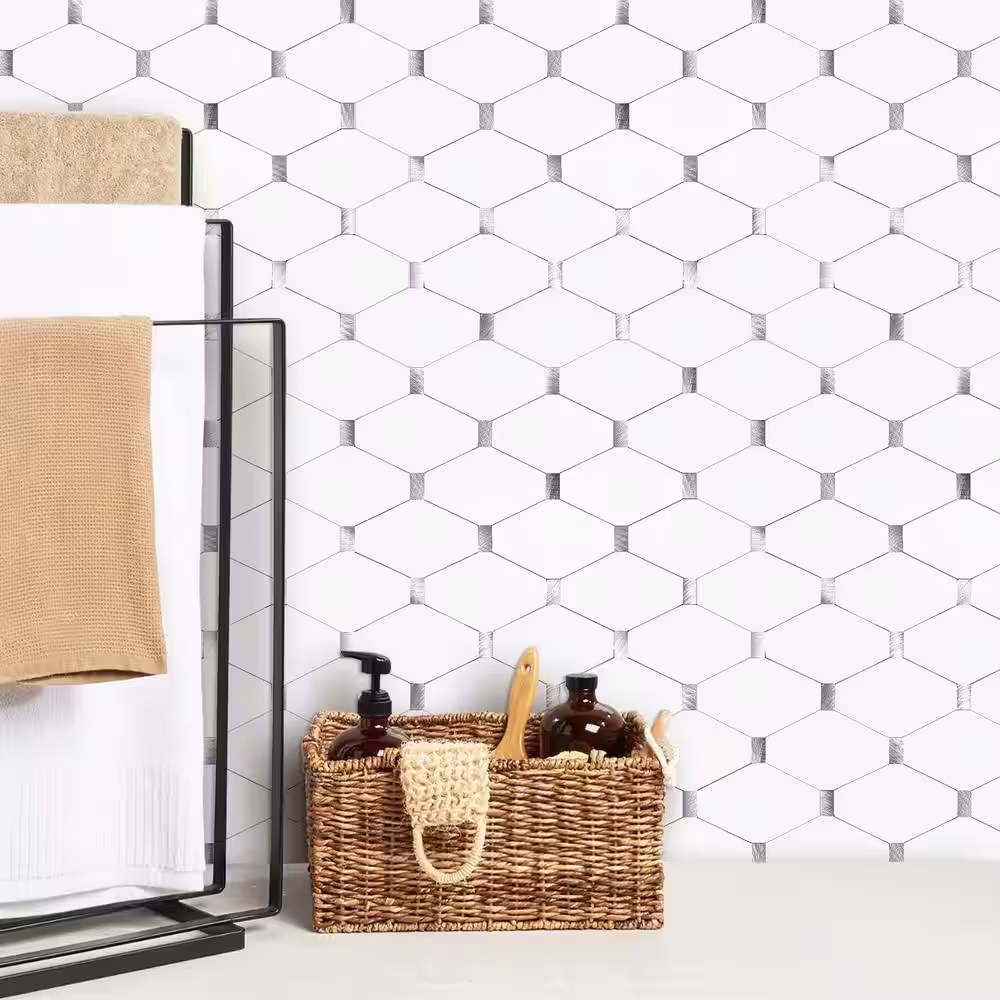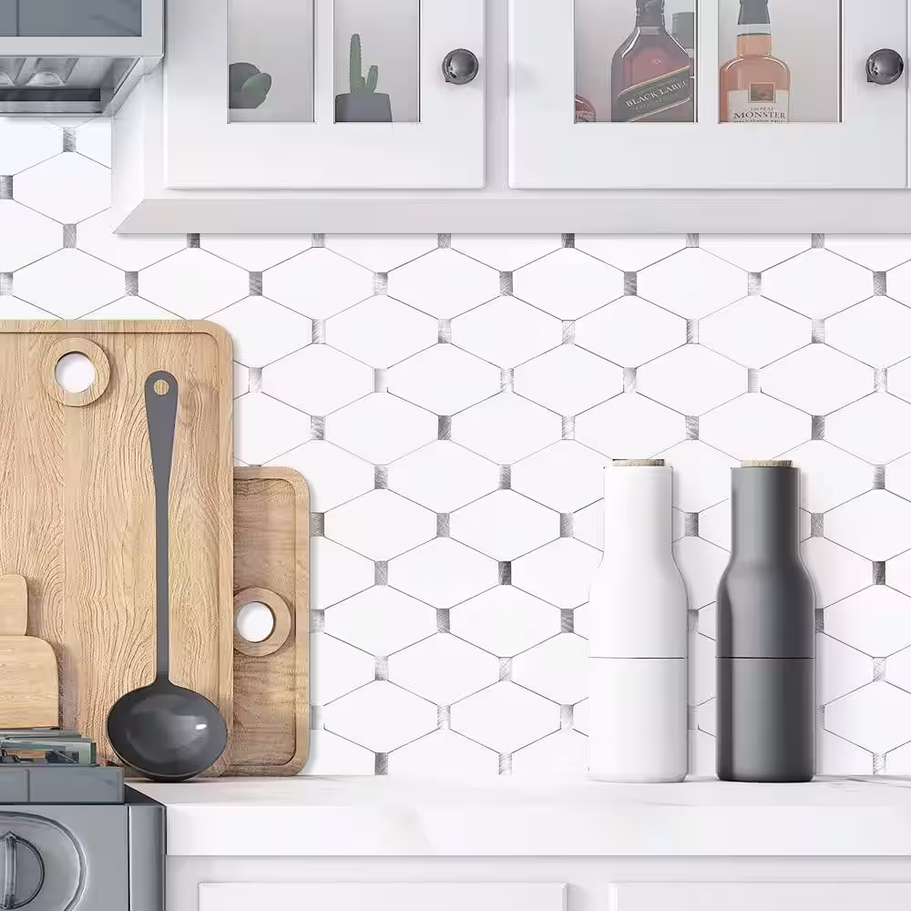 MURELLA White 11.95 in. x 12.00 in. SPC Peel and Stick Backsplash Tile (1 sq. ft./pack)