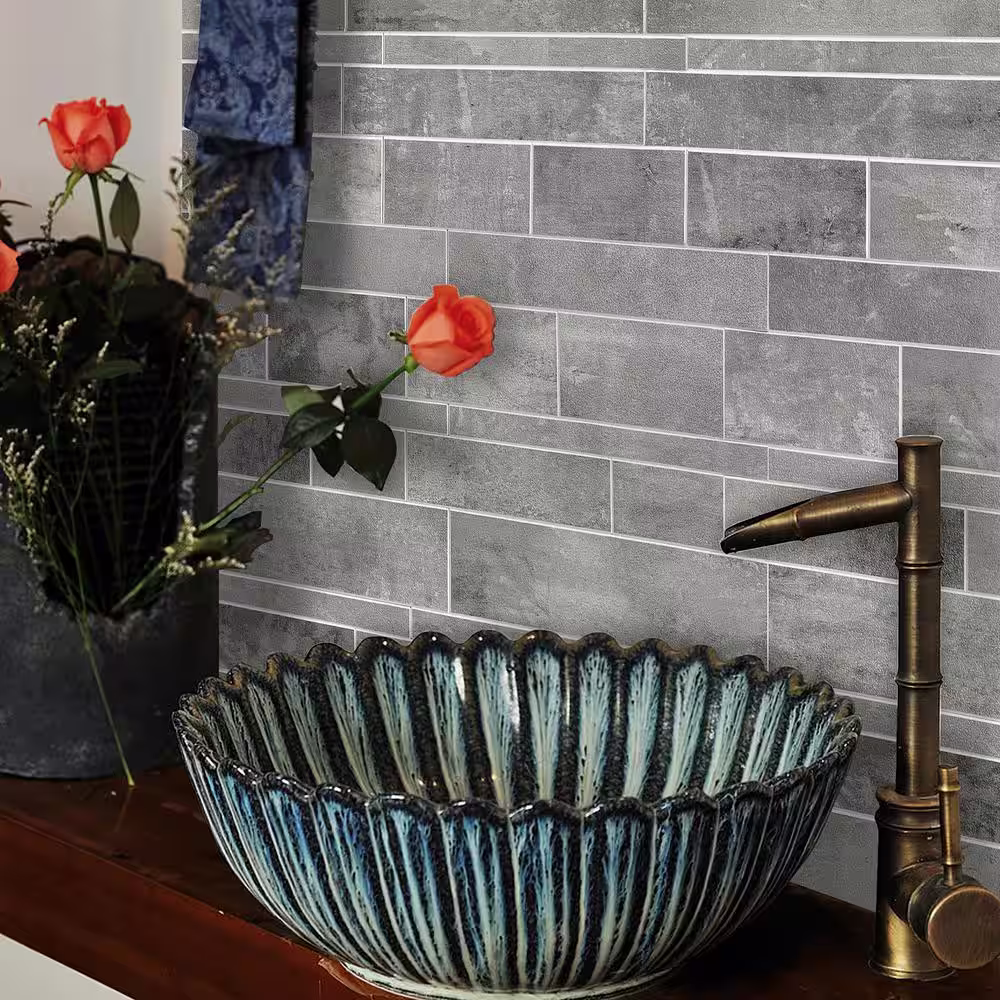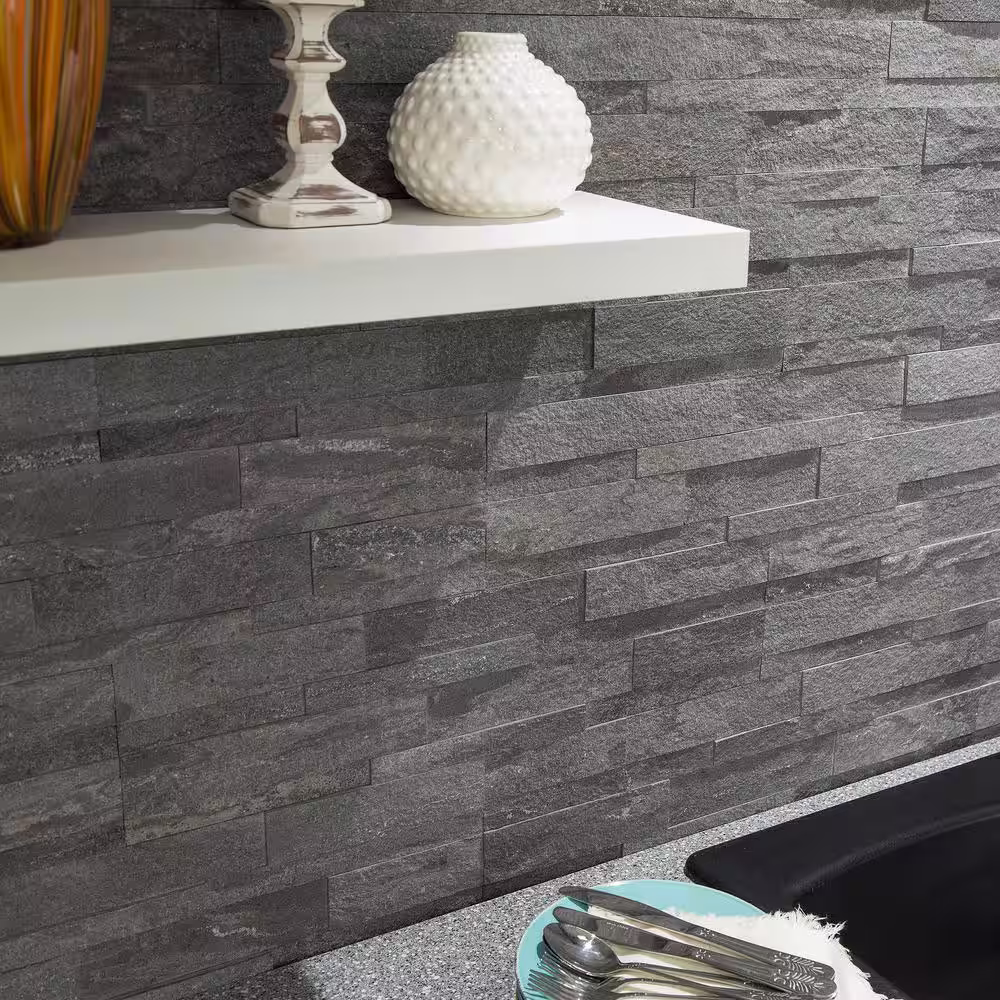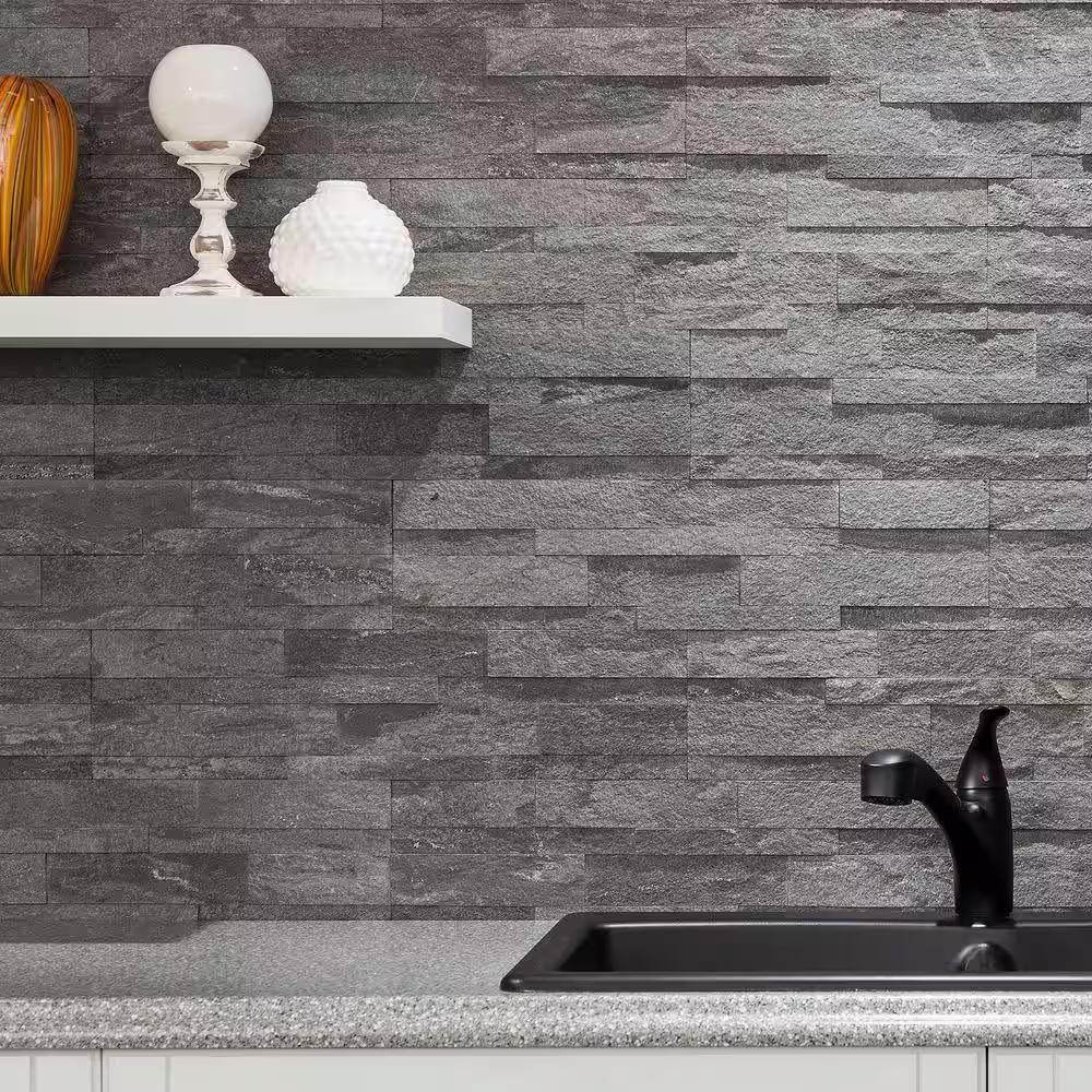Aspect Raised Titanium 5.9 in. x 23.6 in. Stone Peel and Stick Tile (0.97 sq. ft./pack)