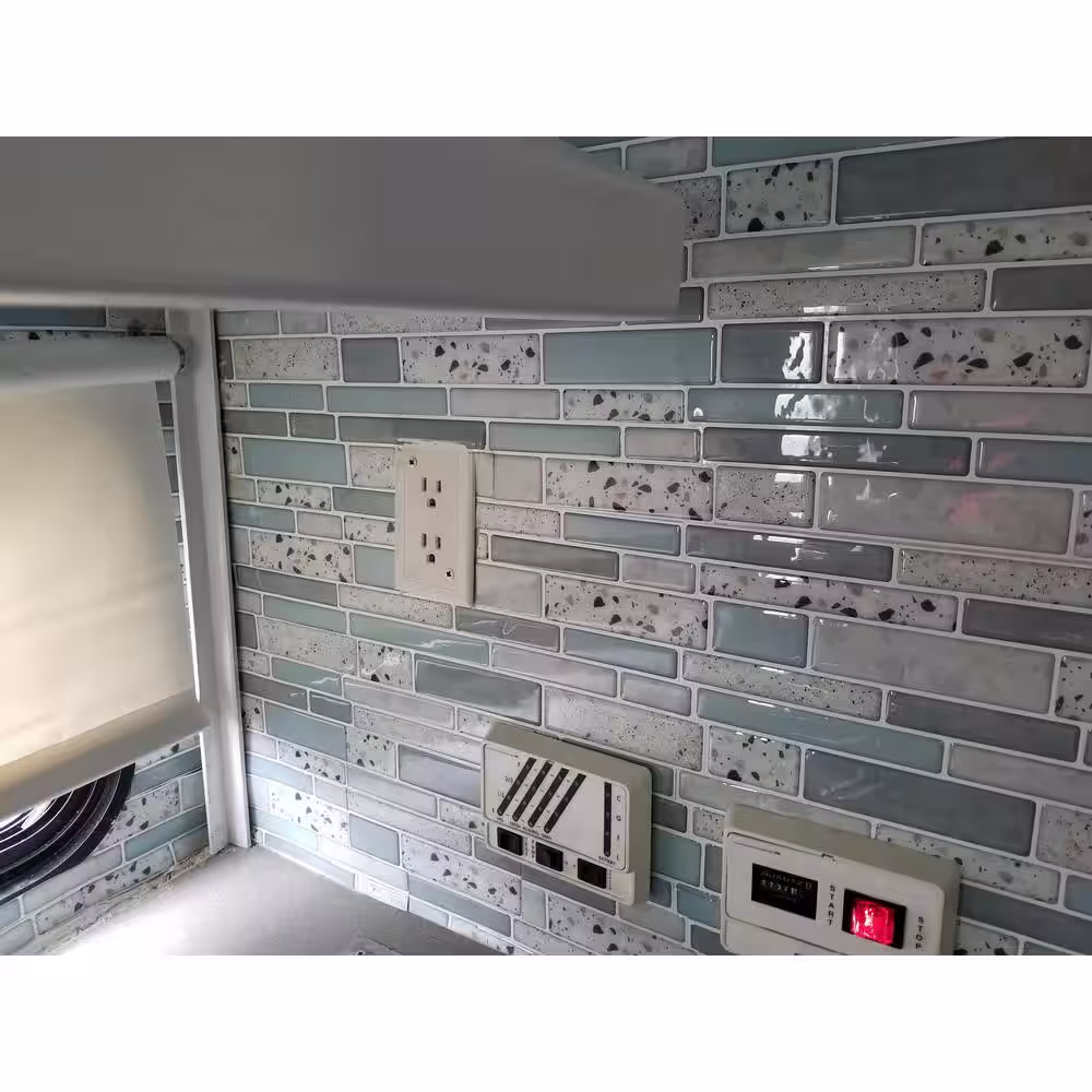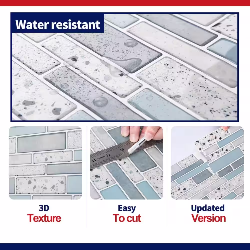 Art3dwallpanels Ranbrick 11.8 in. x 11.8 in. Vinyl Peel and Stick Backsplash Tile in Light Blue (10 Sheets/Case)