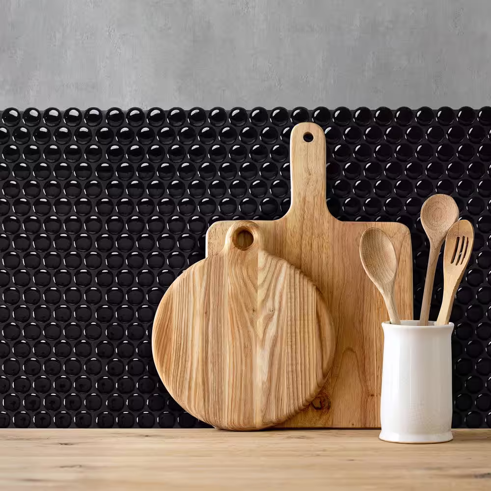 smart tiles Penny Nora Black 8.97 in. x 8.95 in. Vinyl Peel and Stick Tile (2 sq. ft./4-Pack)