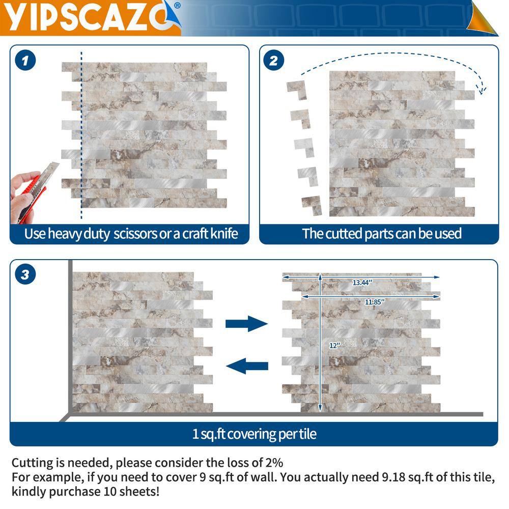 Yipscazo Marble Collection Perisa 12 in. x 12 in. PVC Peel and Stick Tile (5 sq. ft./5-Sheets)