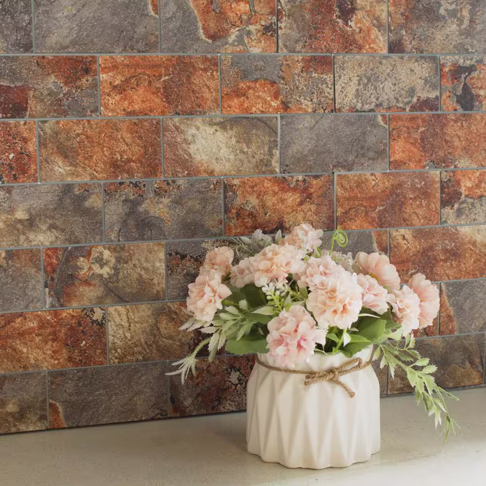 Yipscazo Subway Collection Ink Red Rock 12 in. x 12 in. PVC Peel and Stick Tile (5 sq. ft./5-Sheets)