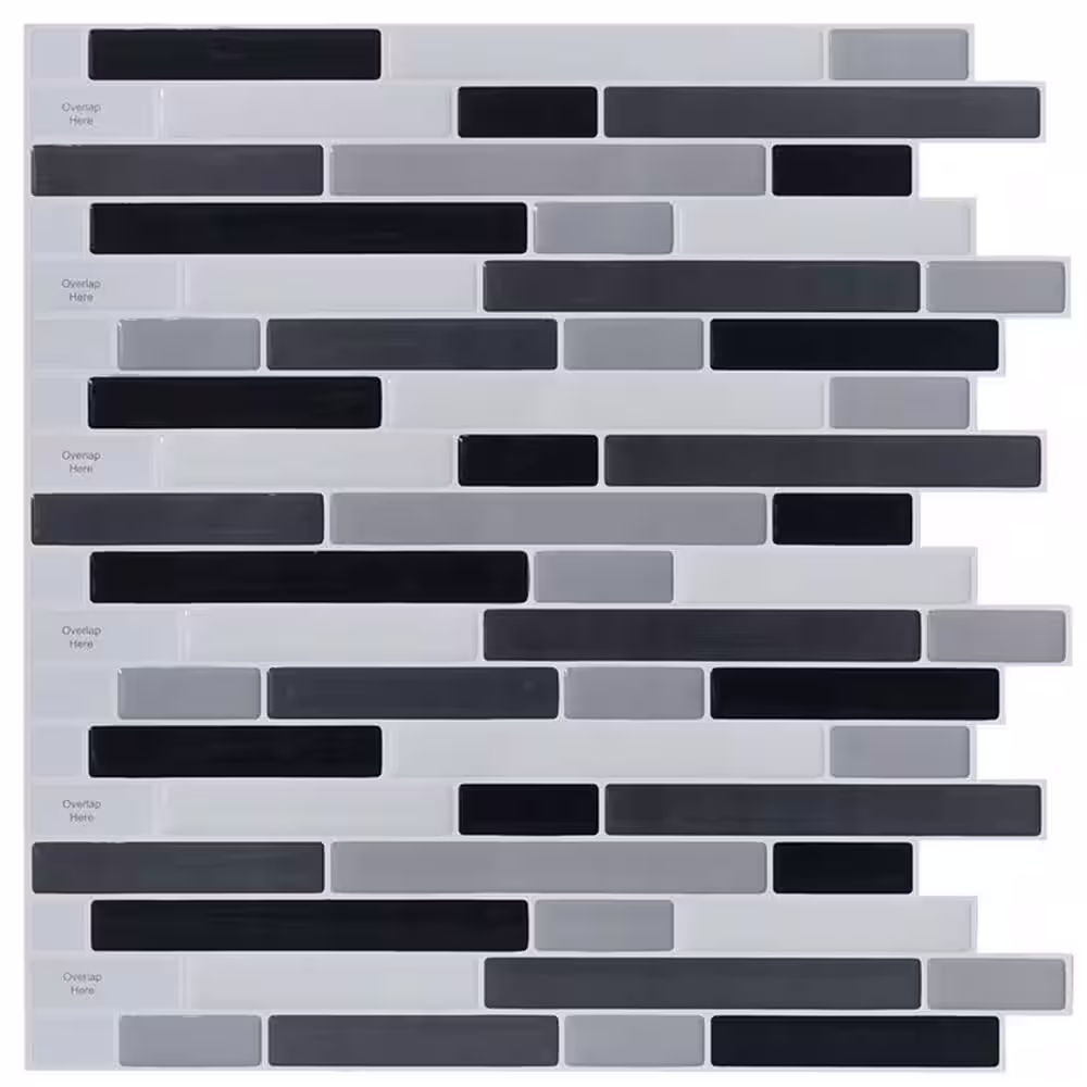 LONGKING Crescendo Terra Black Gray 12 in. x 12 in. Vinyl Peel and Stick Backsplash Tile (8.1 sq. ft./Pack)