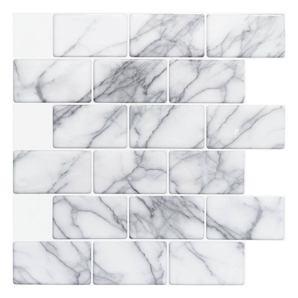 Art3dwallpanels Subway Tile Marble Gray 12 in. x 12 in. Vinyl Peel and Stick Backsplash Tile (8.42 sq. ft./Pack)