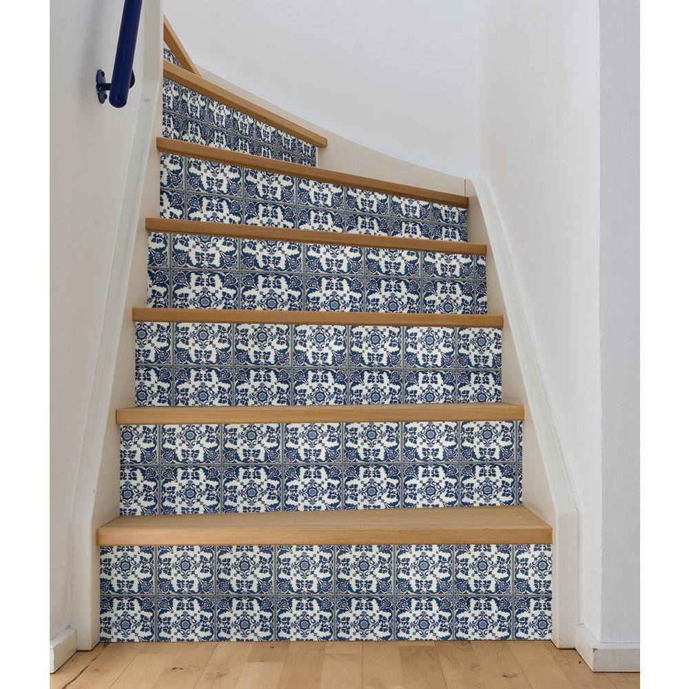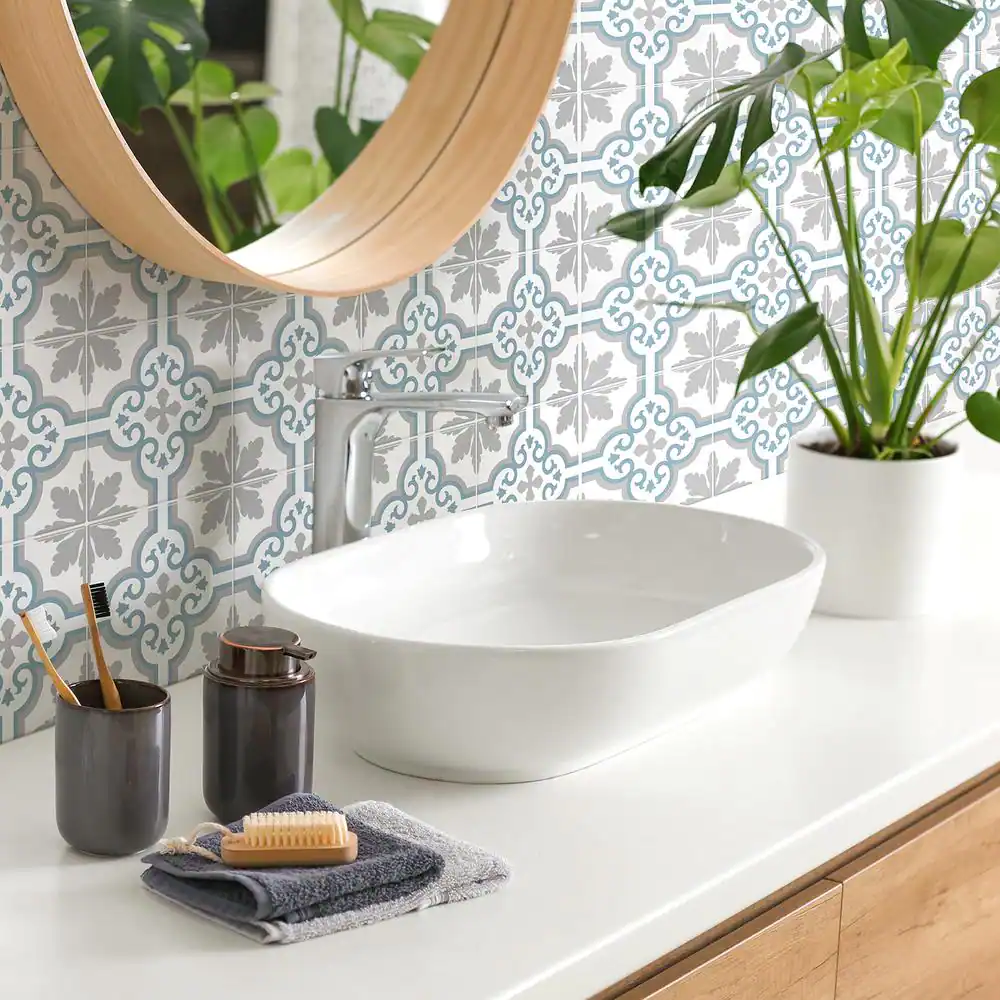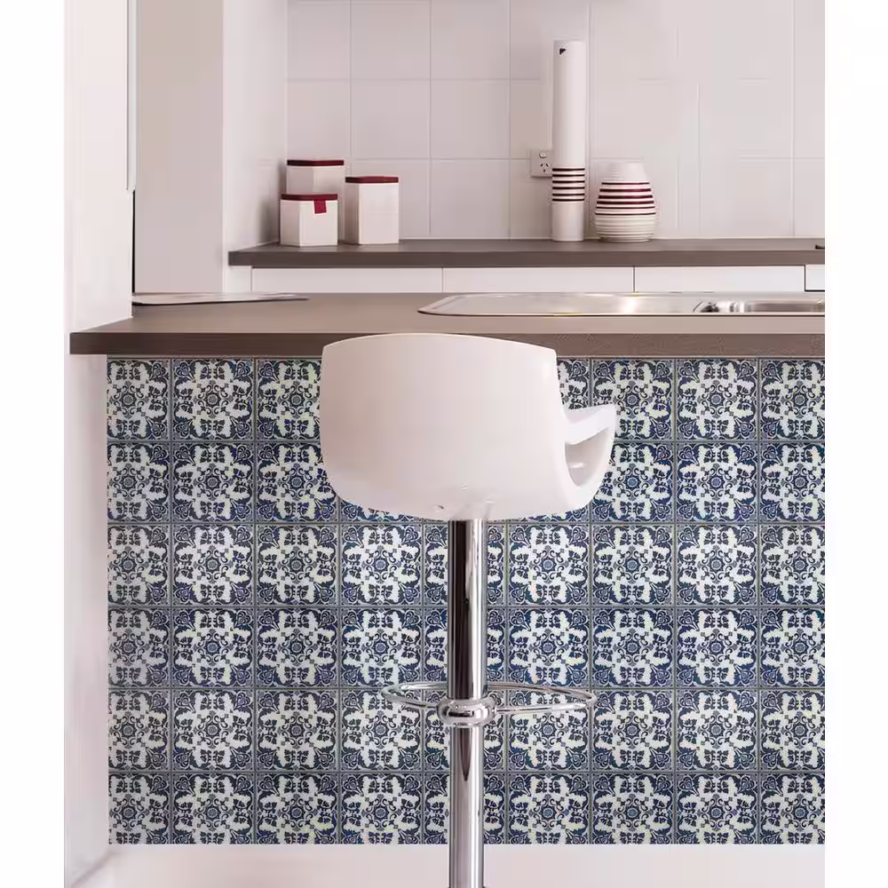 smart tiles Vintage Girona Blue 7.75 in. x 7.75 in. Vinyl Peel and Stick Tile (1.59 sq. ft./4-pack)