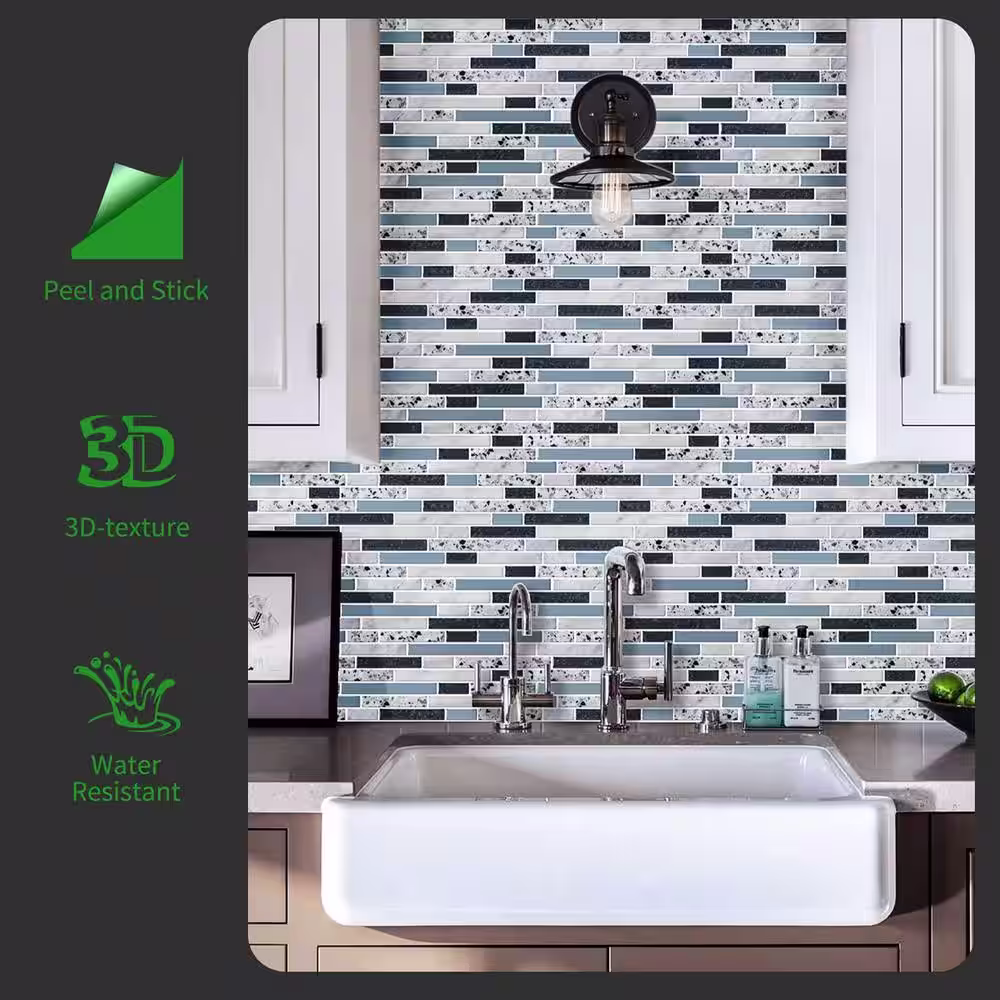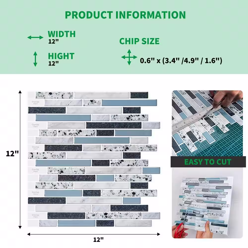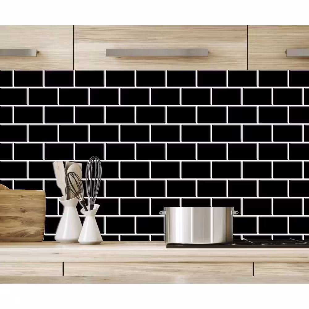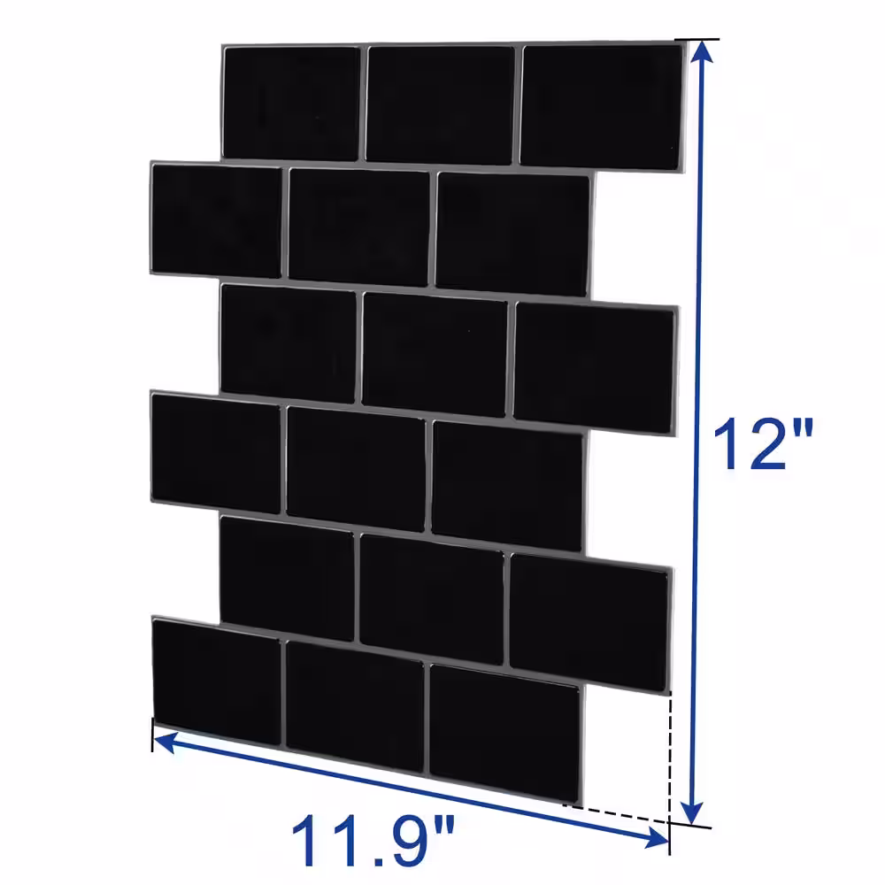 Art3d Subway Black 12 in. x 12 in. Vinyl Peel and Stick Tile Backsplash Self adhesive Tile(8.4/sq.ft./pack)