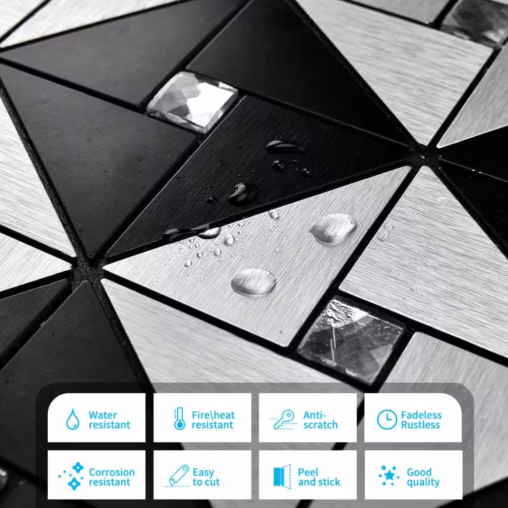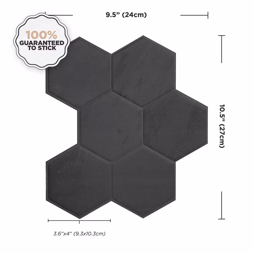 smart tiles Hexa Walton Dark Grey 9.56 in. x 10.61 in. Vinyl Peel and Stick Tile (1.96 sq. ft./4-Pack)