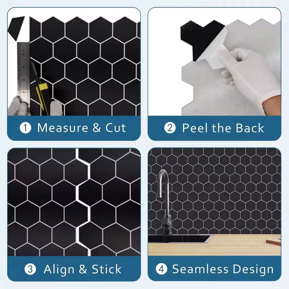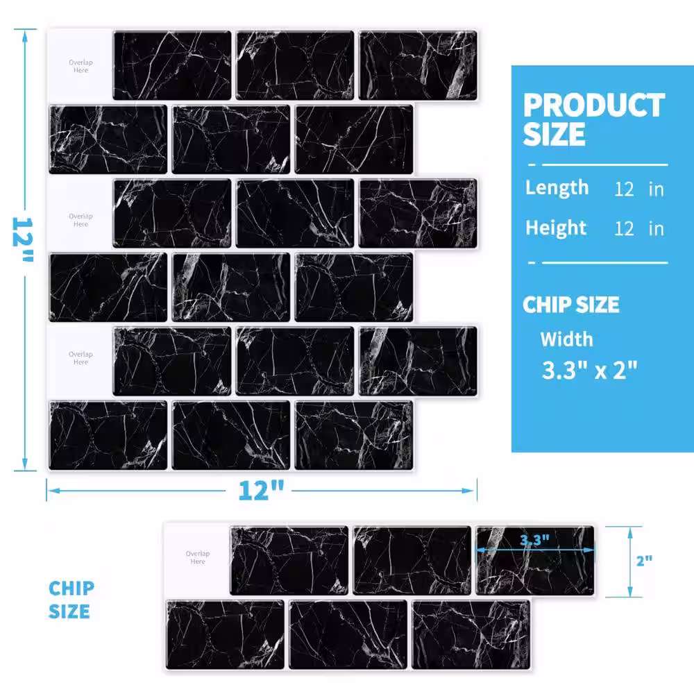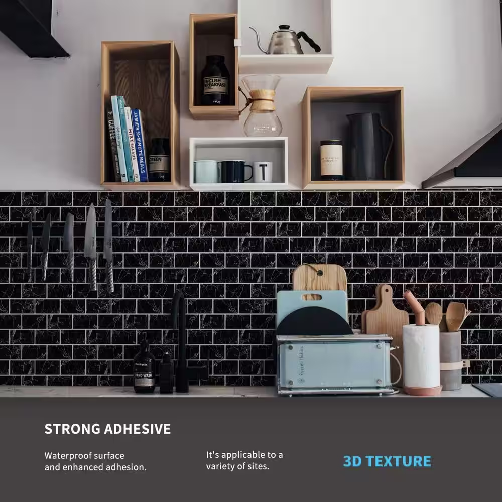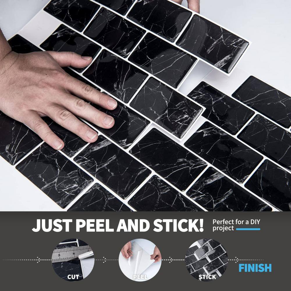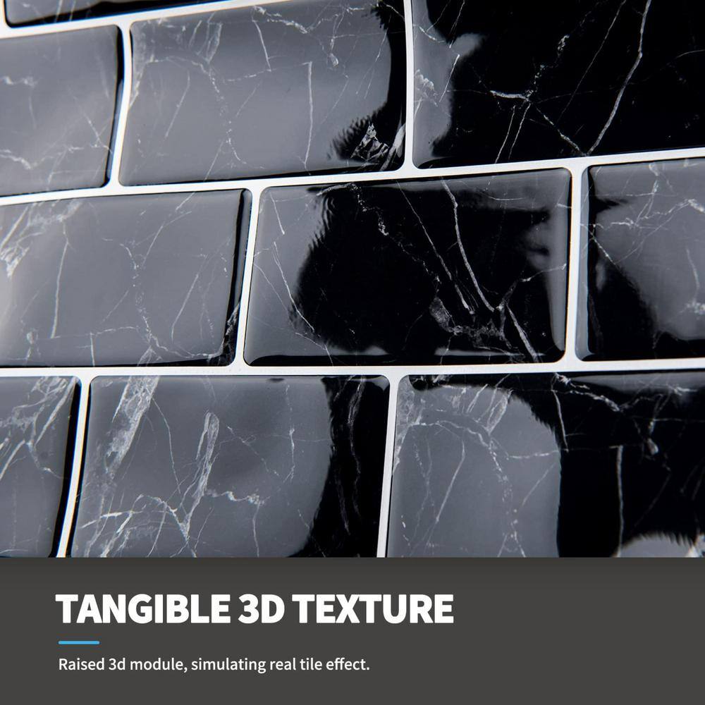 Art3d Marble Design Black 12 in. x 12 in. Vinyl Peel and Stick Tile 10-Sheets (8.2 sq. ft./Box)
