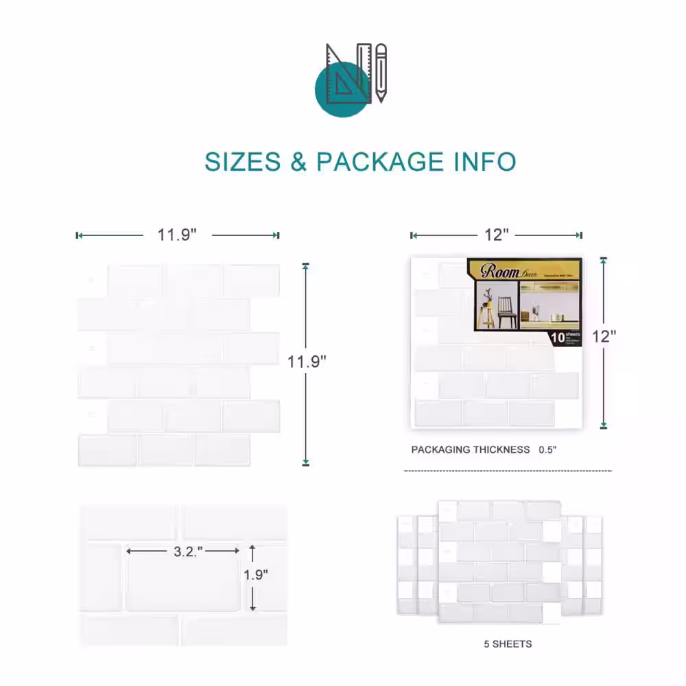 Art3d 12 in. x 12 in. Peel and Stick Vinyl Backsplash Tile in Subway White (6-Pack)