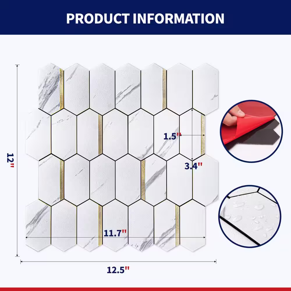 Art3d 12 in. x 12 in. Vinyl Multi-color Self-Adhesive Decorative Wall Tile Backsplash for Kitchen (10-Pack)