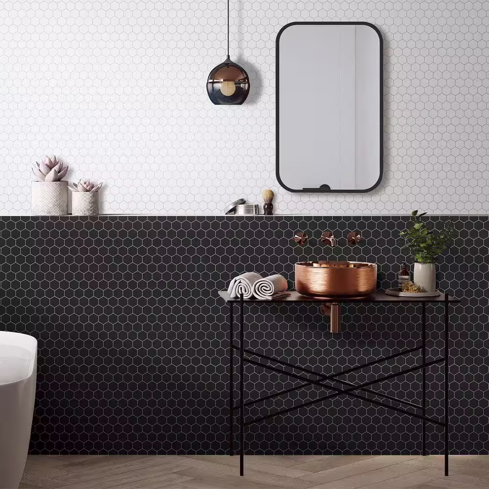ABOLOS Black Diamond Beveled Subway 3 in. x 12 in. x 0.2 in. Glass Peel and Stick Tile (11 sq. ft./Case)
