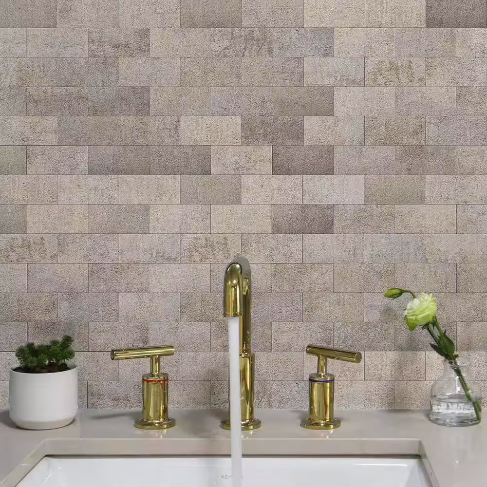 Art3dwallpanels Subway Backsplash Yellow Rust 12 in. x 12 in. PVC Peel and Stick Tile (10 sq.ft./Case)