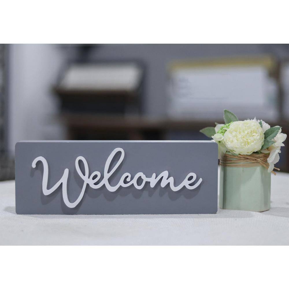 None Modern Farmhouse White 3D Cutout Welcome Word Gray Wood Plaque Wall Decorative Sign