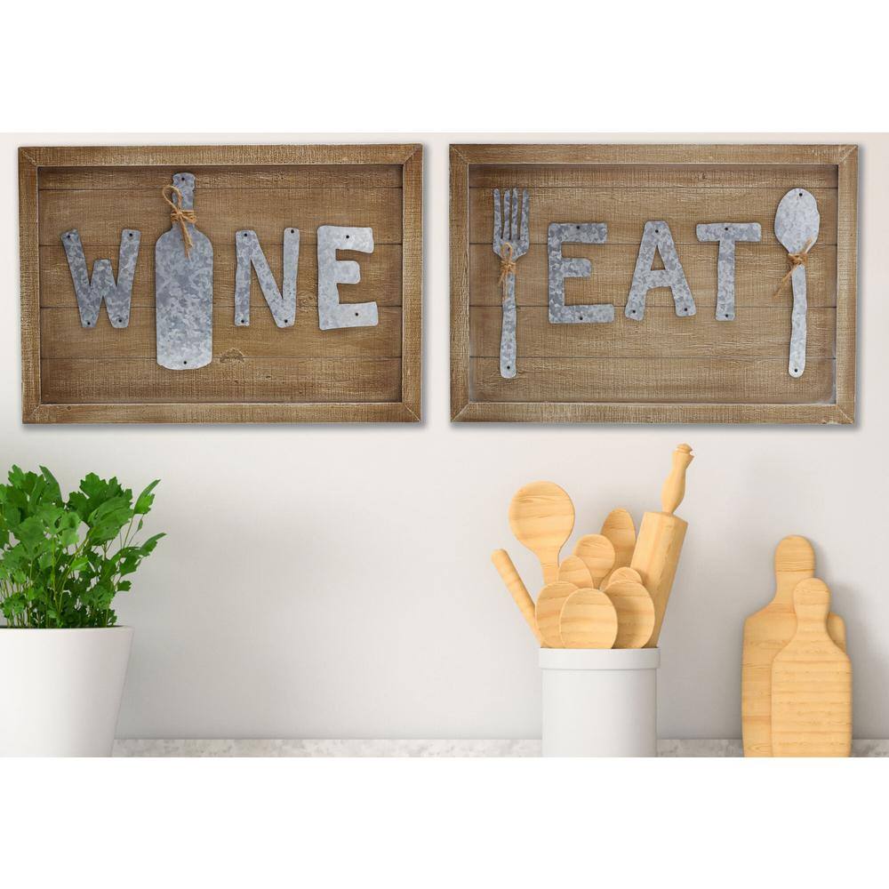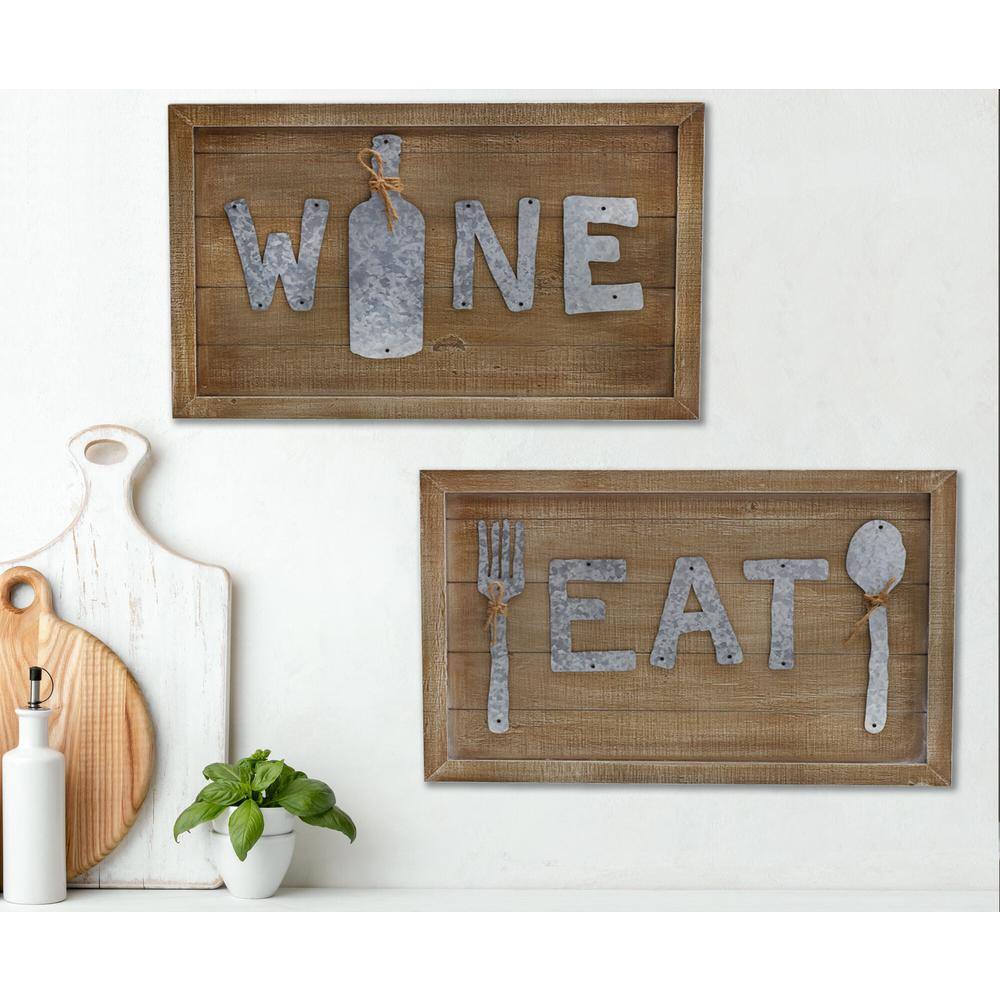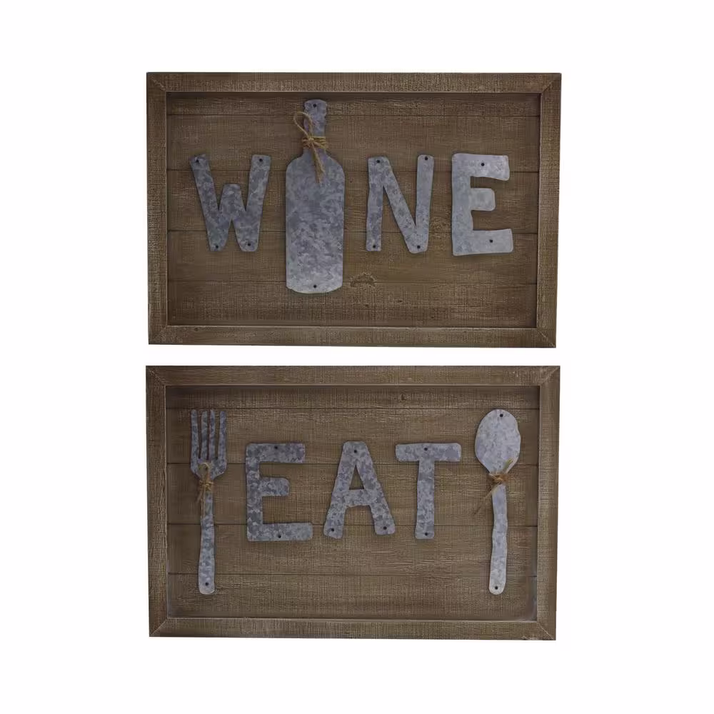 Elements "Eat "and "Wine" MDF Decorative 2-piece Wall Plaque Set, Decorative Sign