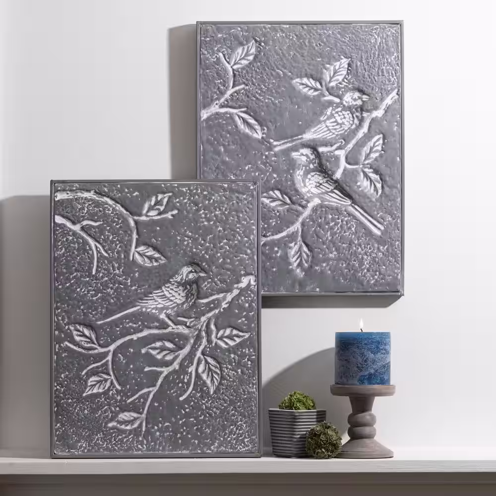 SULLIVANS 12.5" x 16.25" Bird and Botanical Etched Decorative Sign (Set of 3)