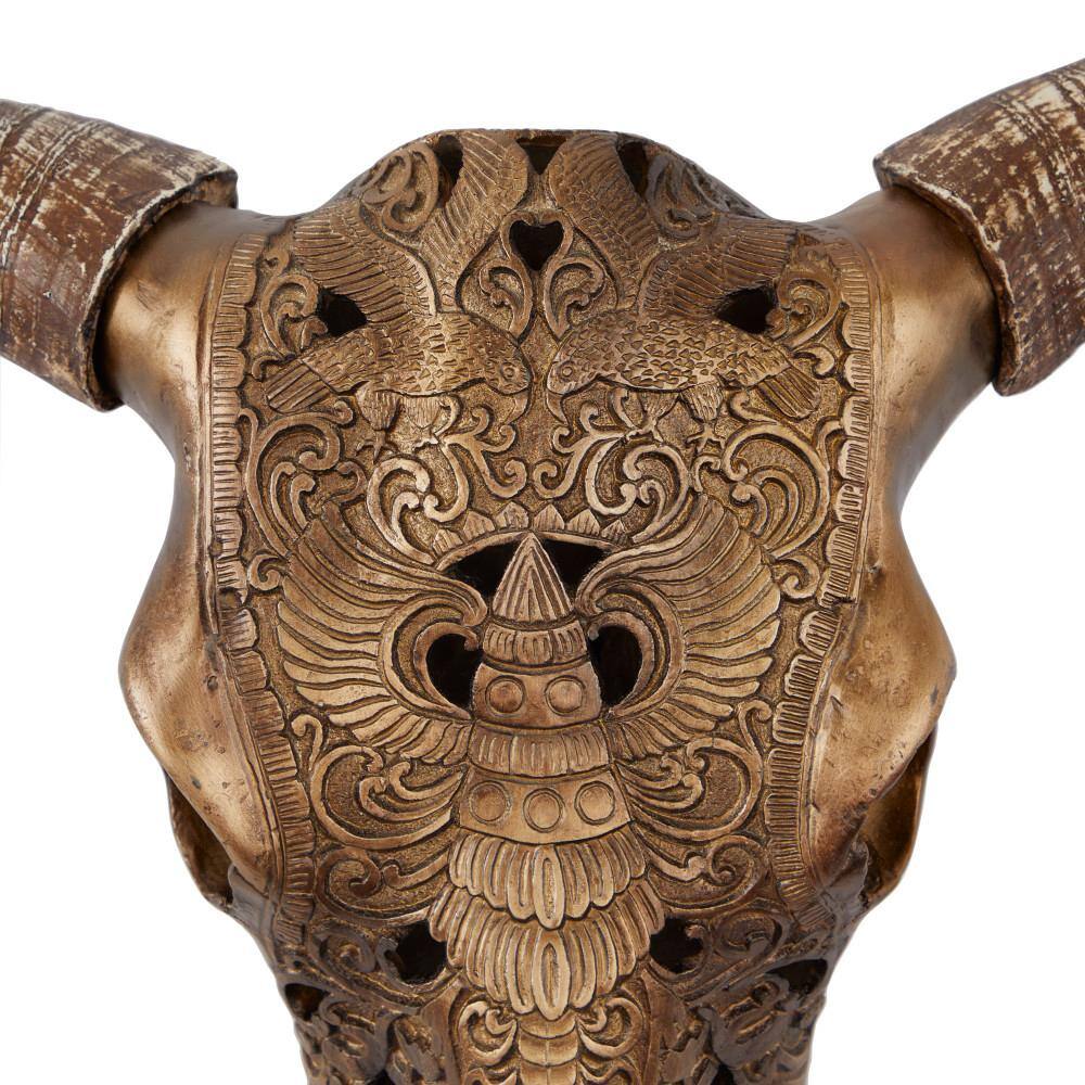 Litton Lane 30 in. x 28 in. Bronze Polystone Bohemian Cow Skull Wall Decor