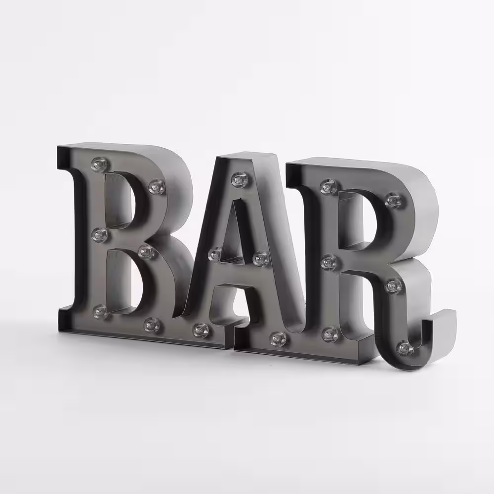 LuxenHome Illuminated Bar Marquee Battery-Op LED Freestanding or Wall Mounted Tin Lighted Sign