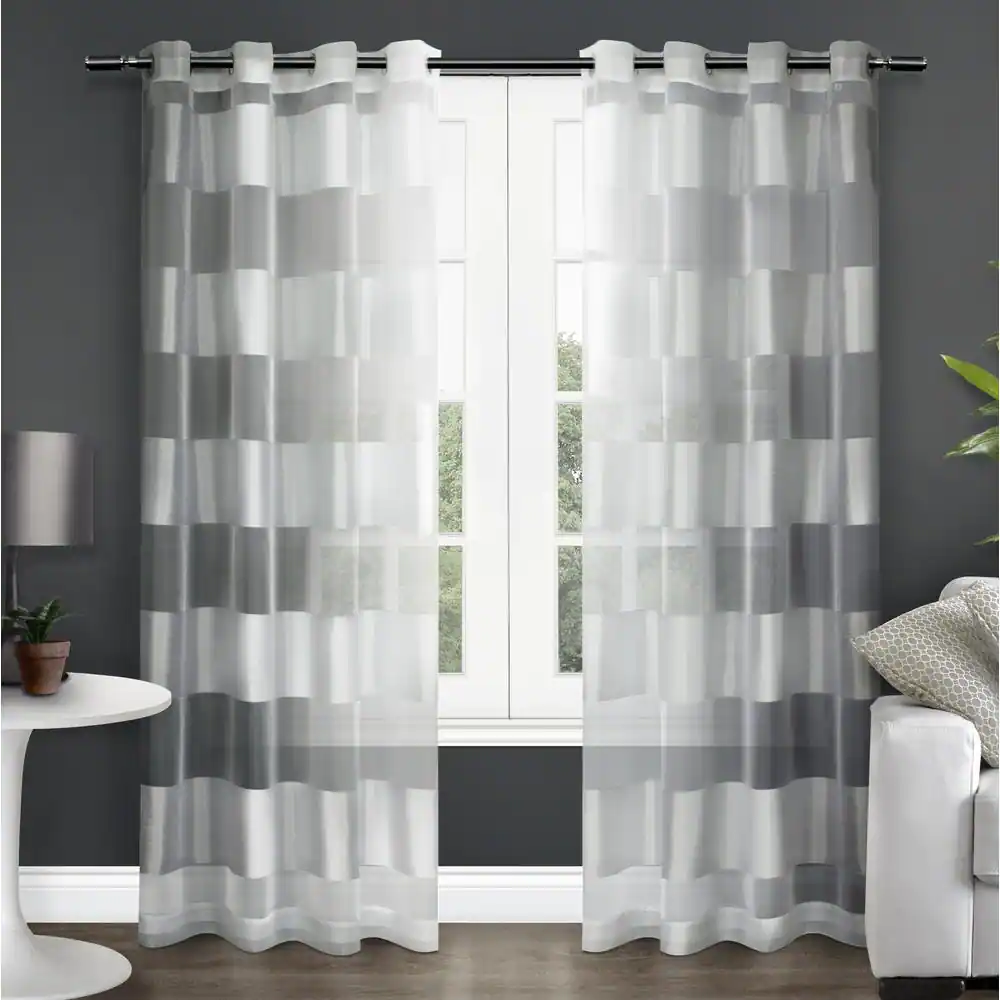 EXCLUSIVE HOME Navaro Winter White Stripe Sheer Grommet Top Curtain, 54 in. W x 96 in. L (Set of 2)
