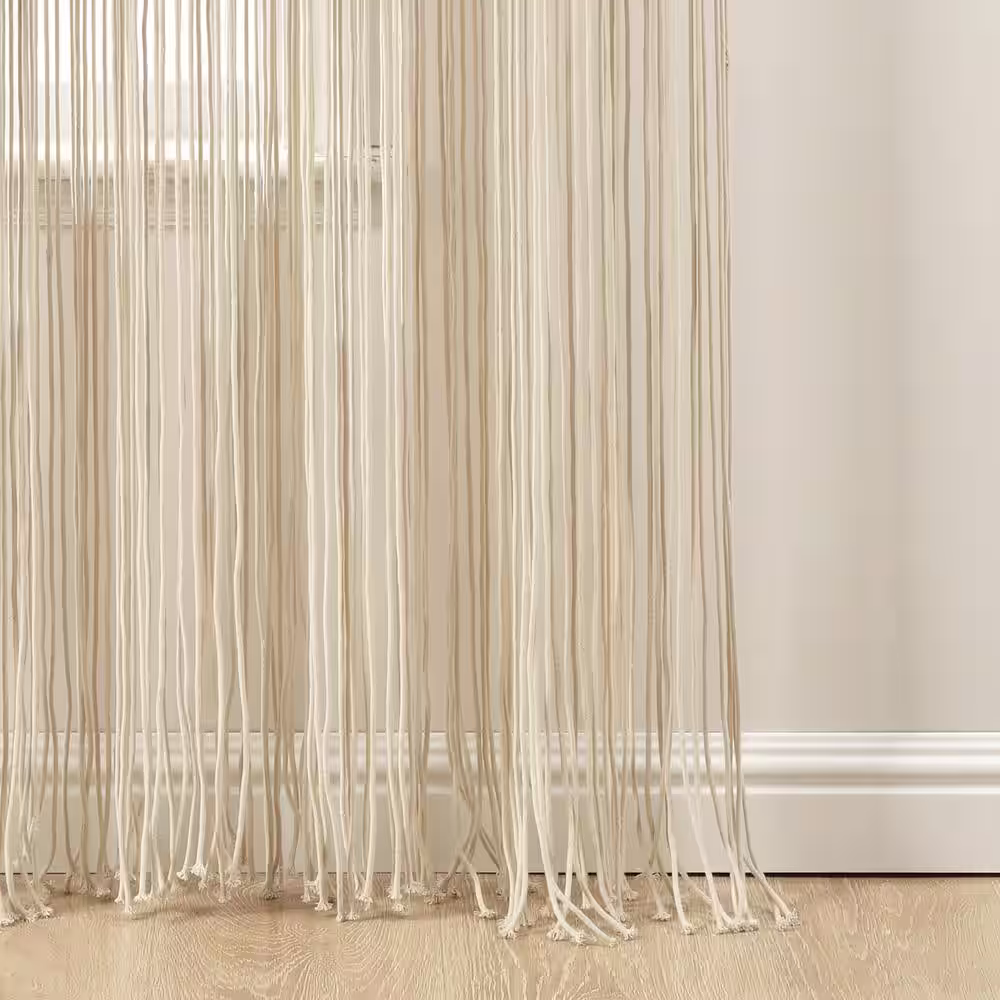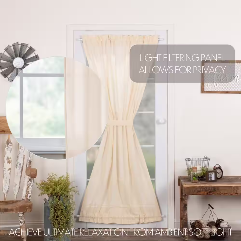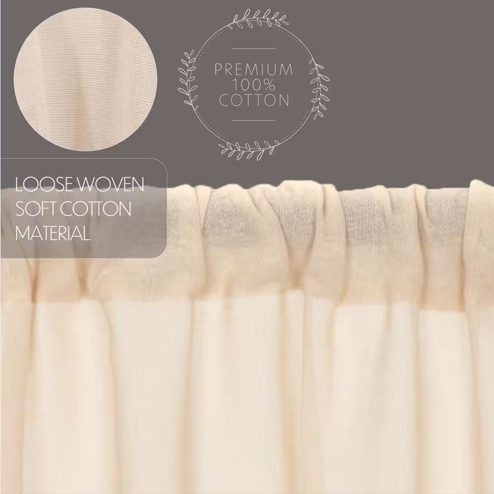 VHC Brands Tobacco Cloth 40 in. W x 72 in. L Sheer Rod Pocket French Door Window Panel in Natural Cream