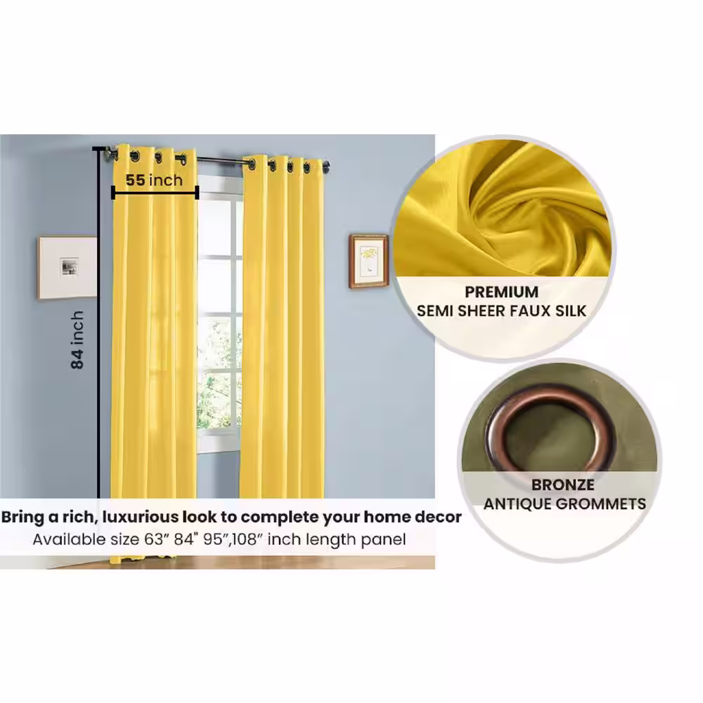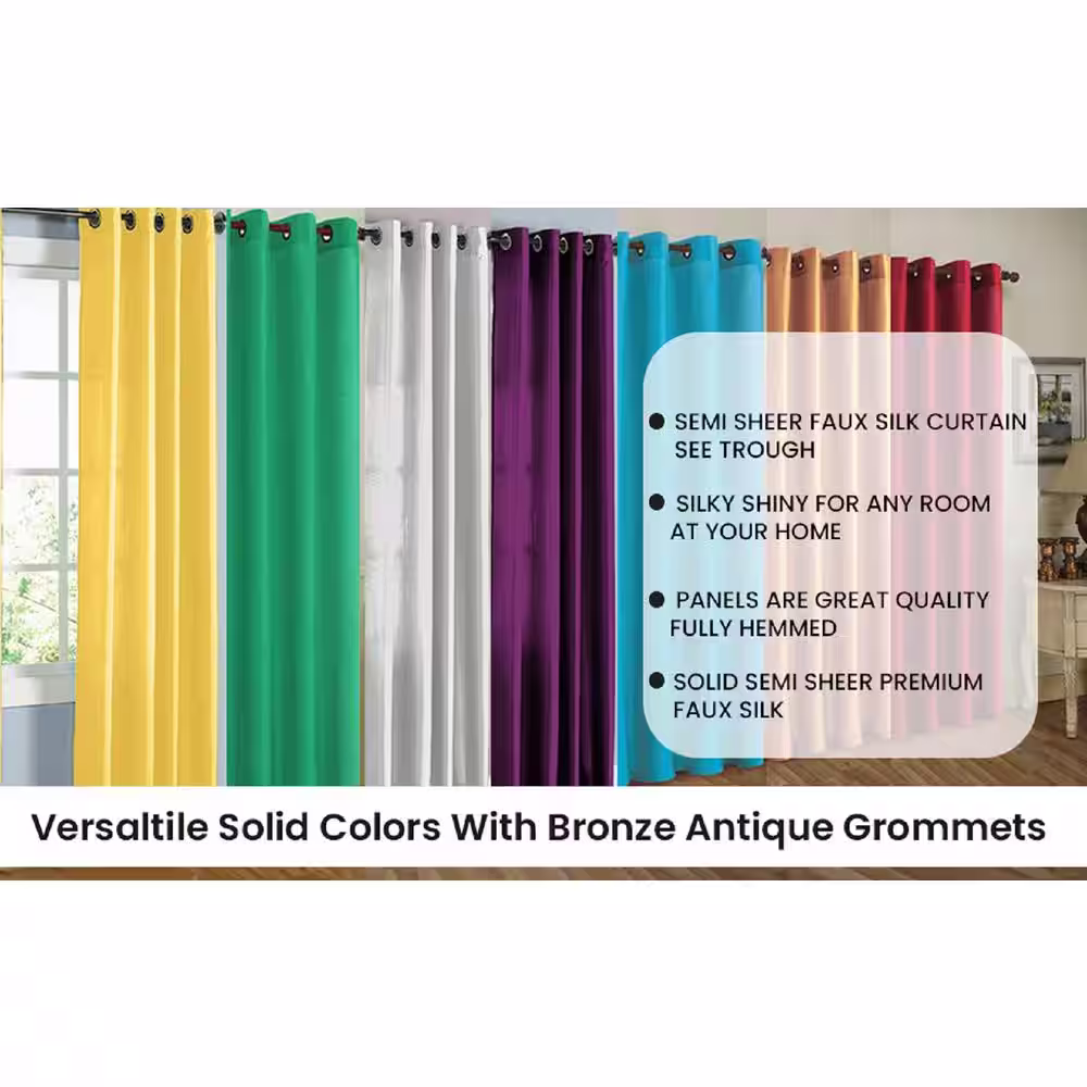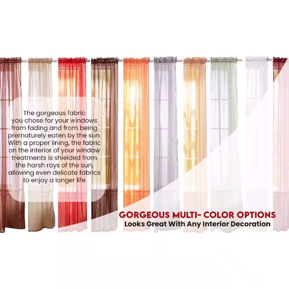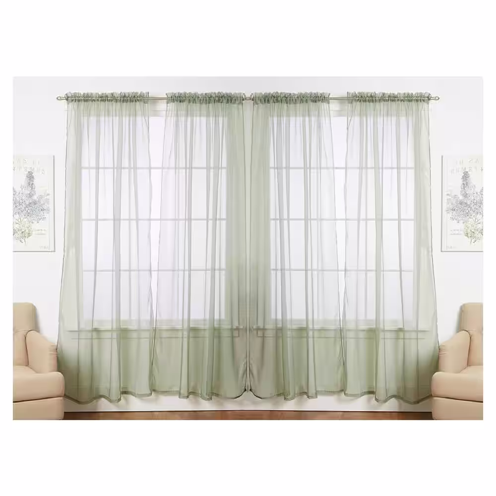 J&V TEXTILES Solid Sage 55 in. W x 84 in. L Rod Pocket Sheer Window Curtain Panel (Set of 4)