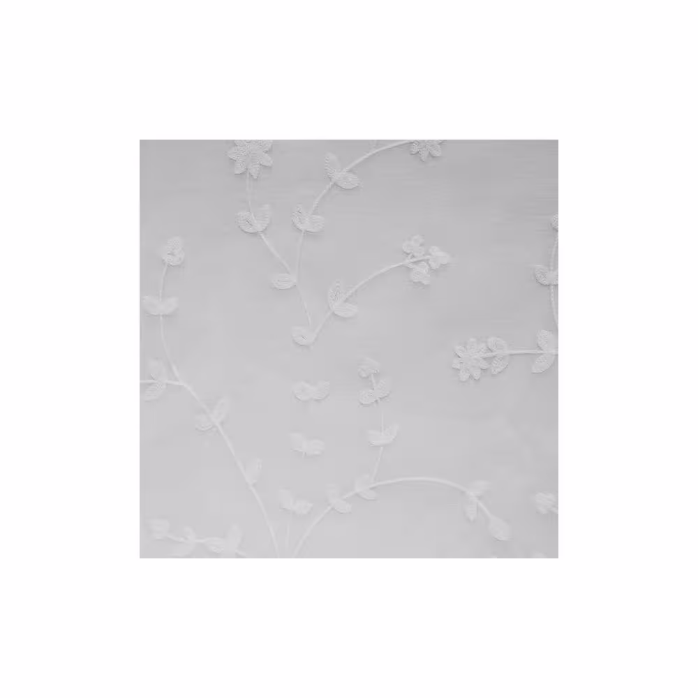 None Linen Floral Embroidered Rod Pocket Sheer Curtain - 50 in. W x 95 in. L