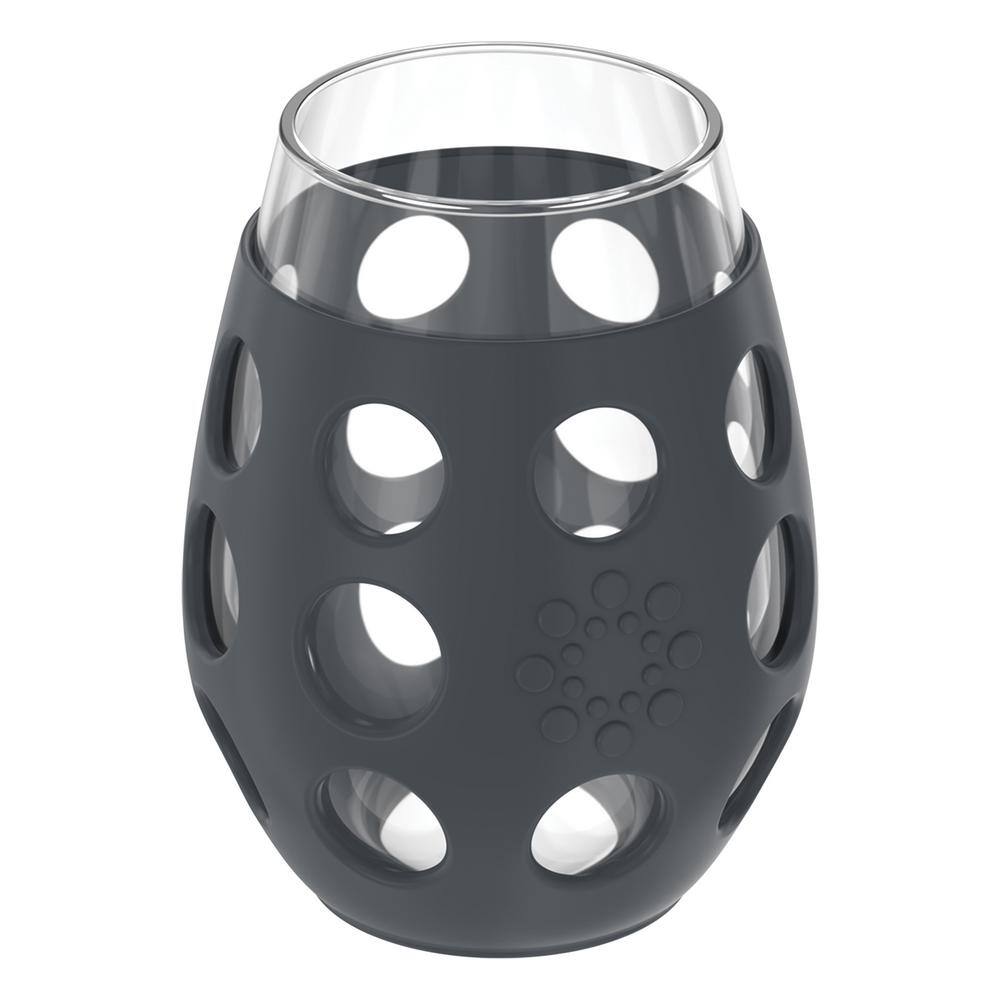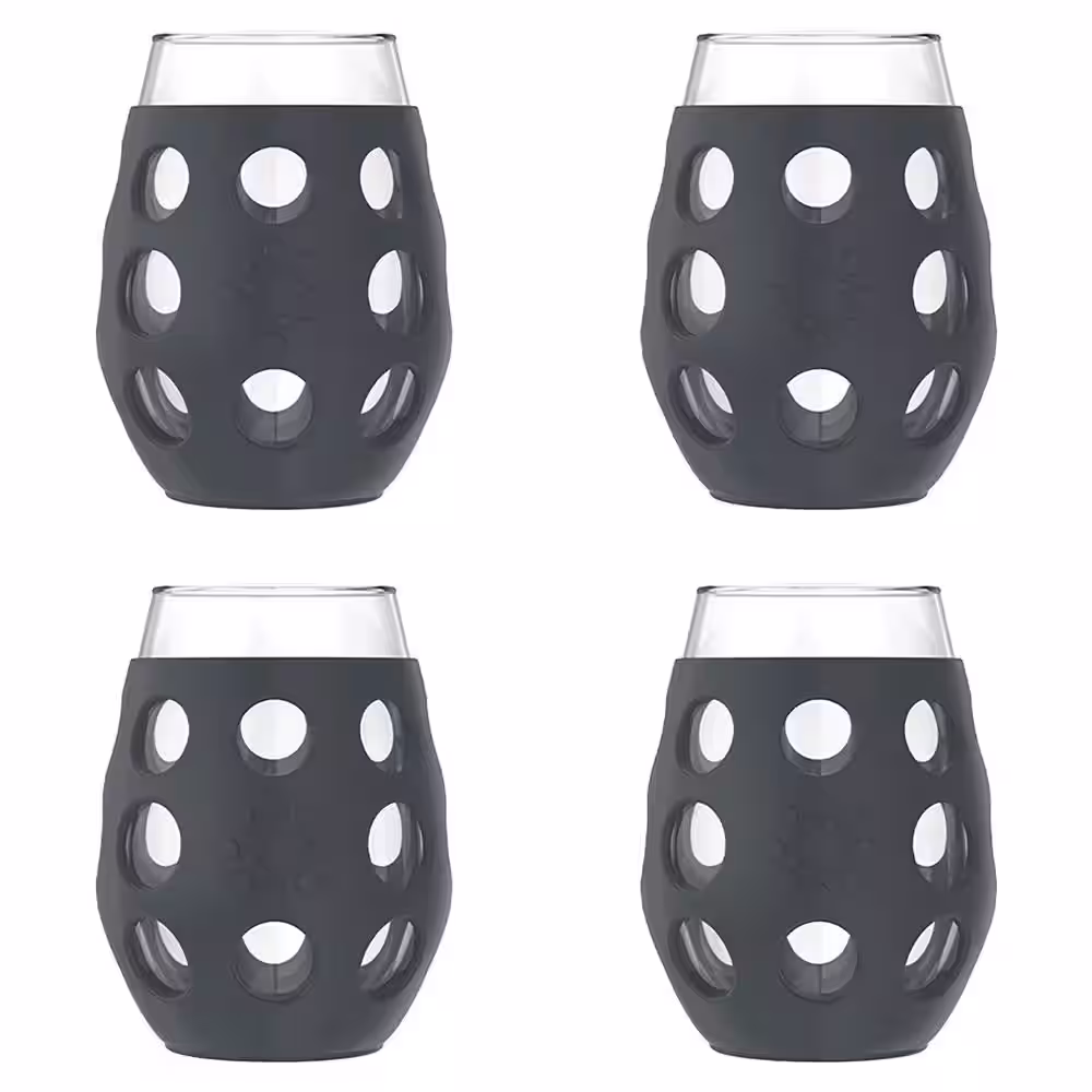 None 11 oz. Stemless Wine Glasses with Protective Silicone Sleeves and Lids (Set of 4)