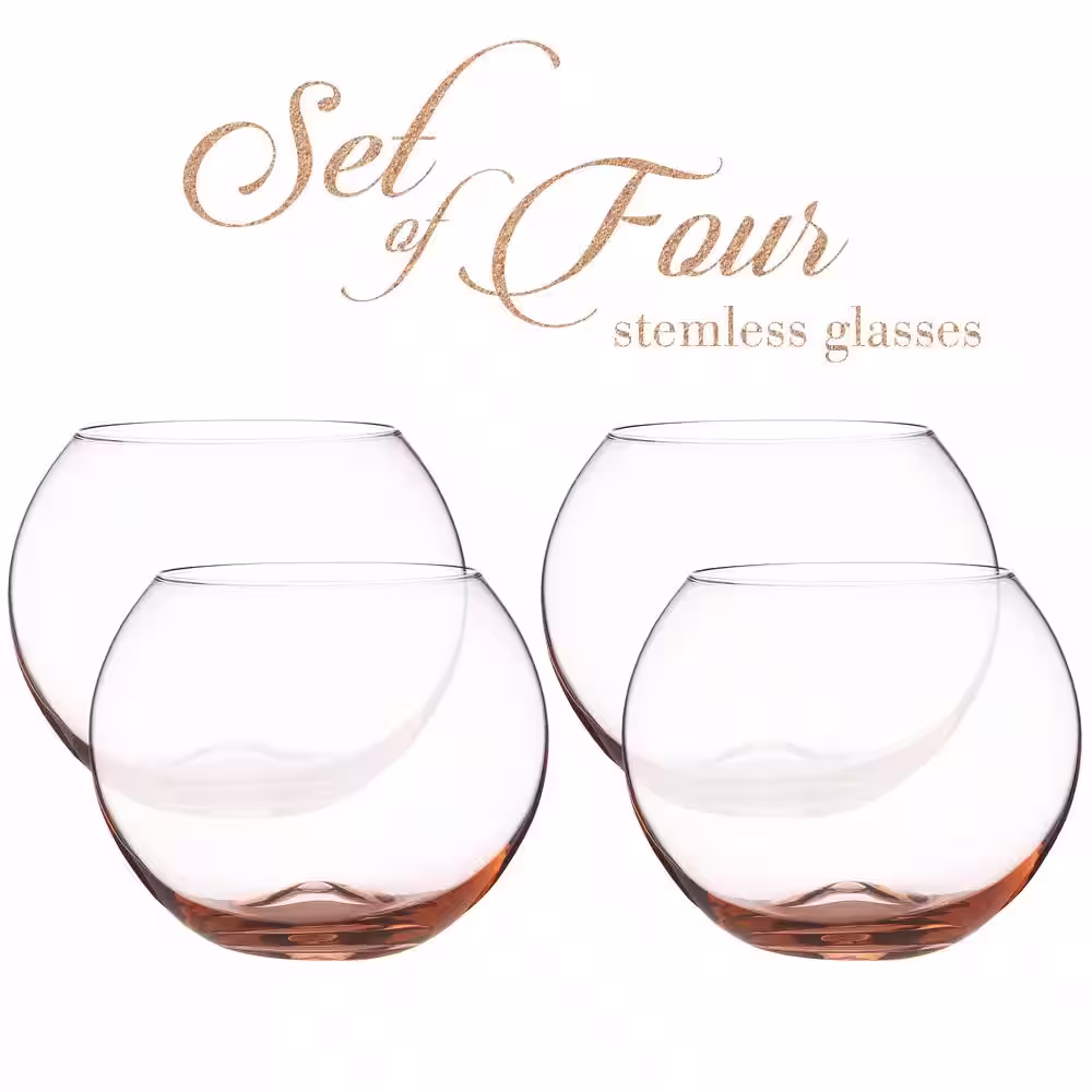 Berkware Luxurious and Elegant Sparkling Rose Pink Colored Glassware - Set of 4