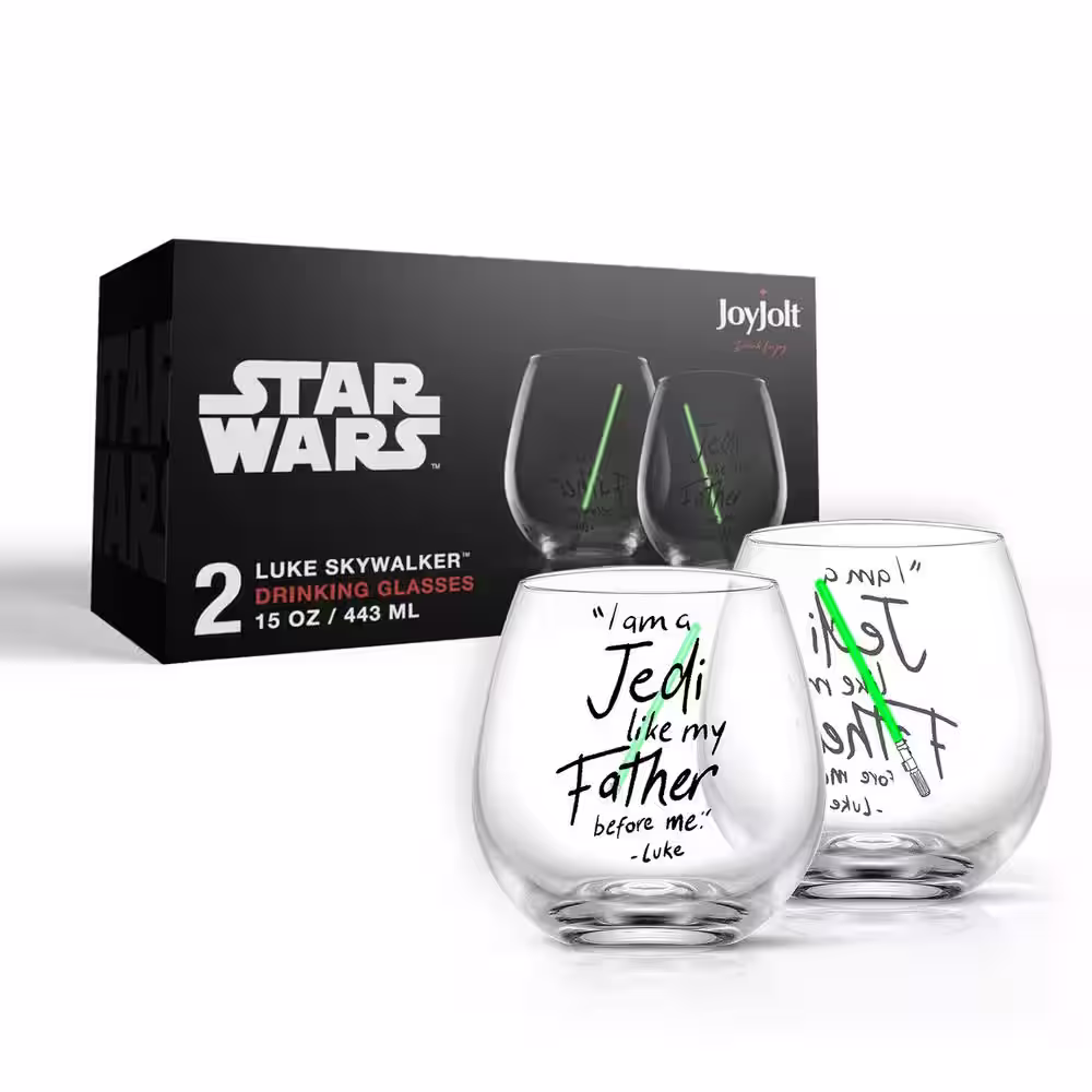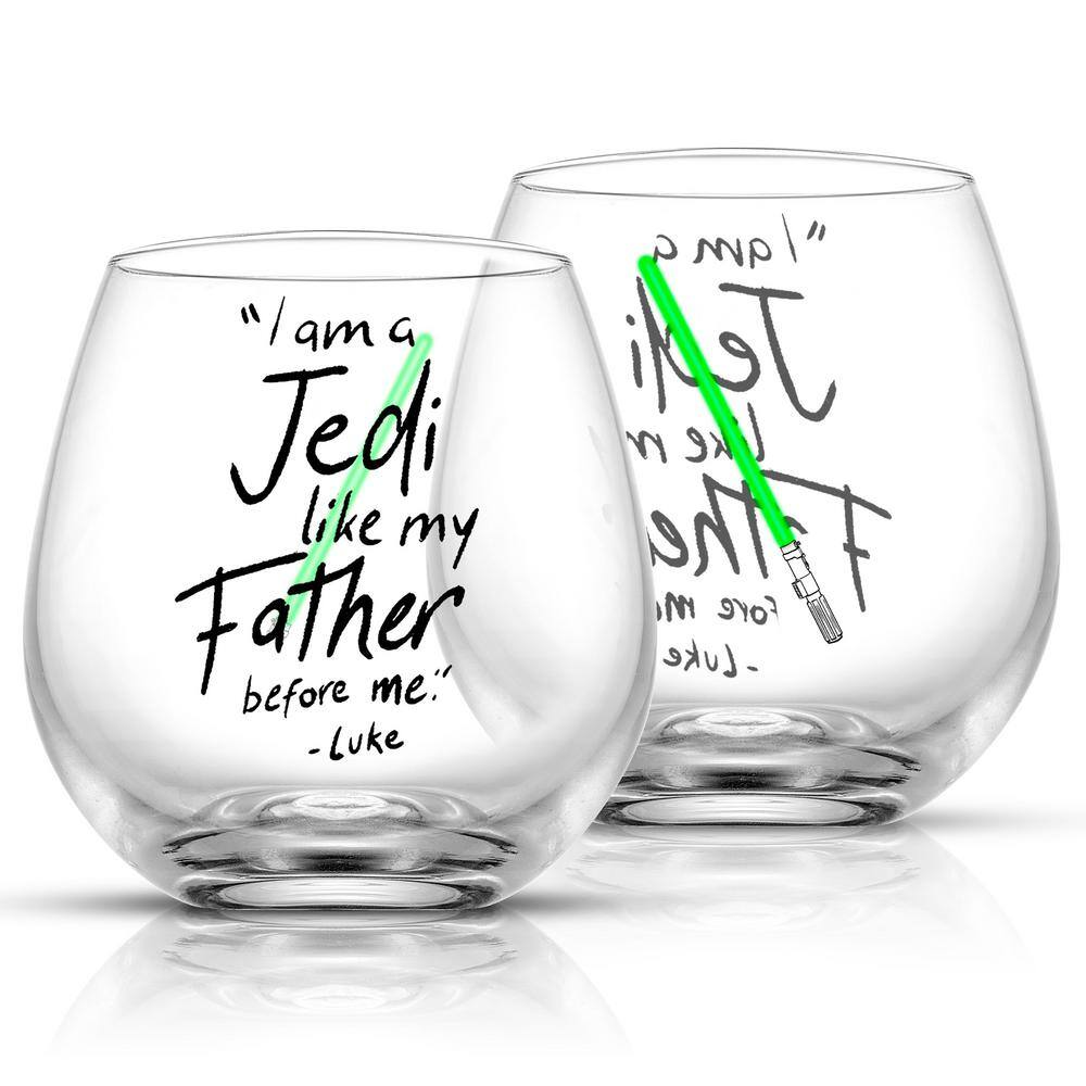 JoyJolt Star Wars New Hope Luke Skywalker Green Lightsaber 15 oz. Stemless Drinking Glass (Set of 2)